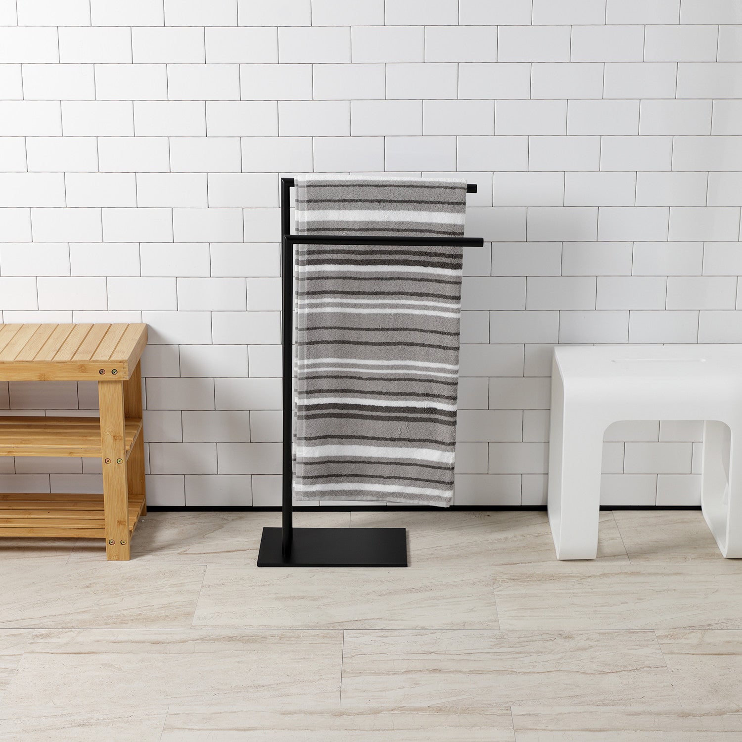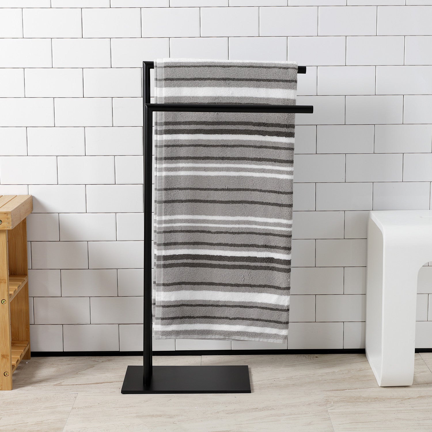 - Freestanding dual towel rack