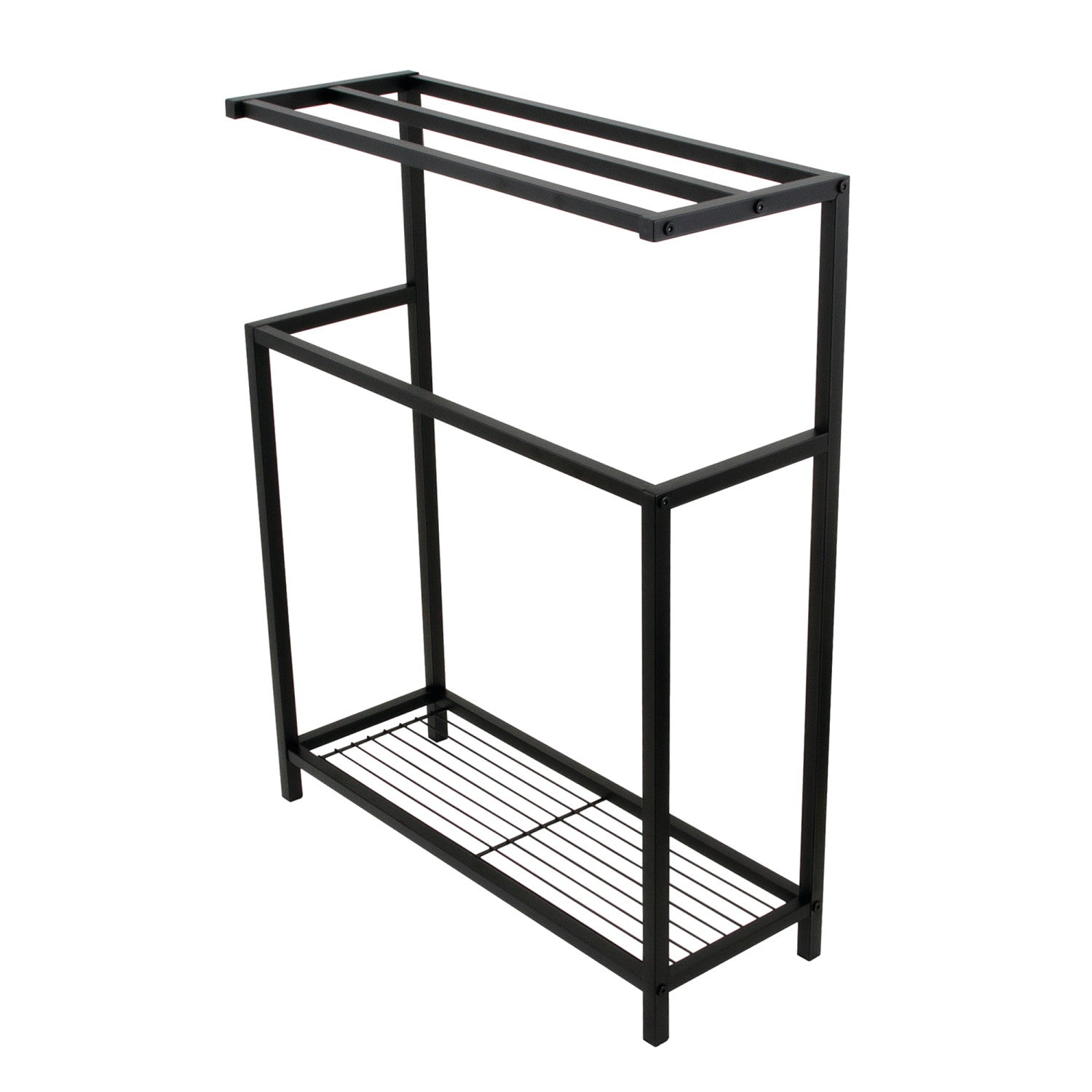 With a chic and stylish design, the Edenscape freestanding towel rack will stand out in your bathroom. Use its multi-tiered design and shelf for extra storage to hang/fold your various towel, clothing, or other accessories. The towel rack is constructed from steel for usage for years to come.