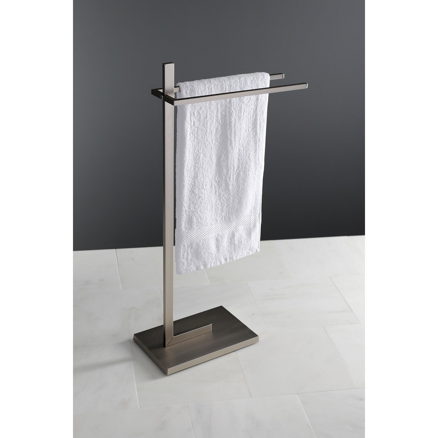 Your towels will always be in reach with this pedestal dual towel rack. Constructed from solid steel and stainless steel base for rust-free and durable performance.This towel rack has multiple rods to hang bath and hand towels from. The contemporary design of this towel stand makes it suitable for both transitional and contemporary home decors. The base is weighted to prevent any accident tip-overs.