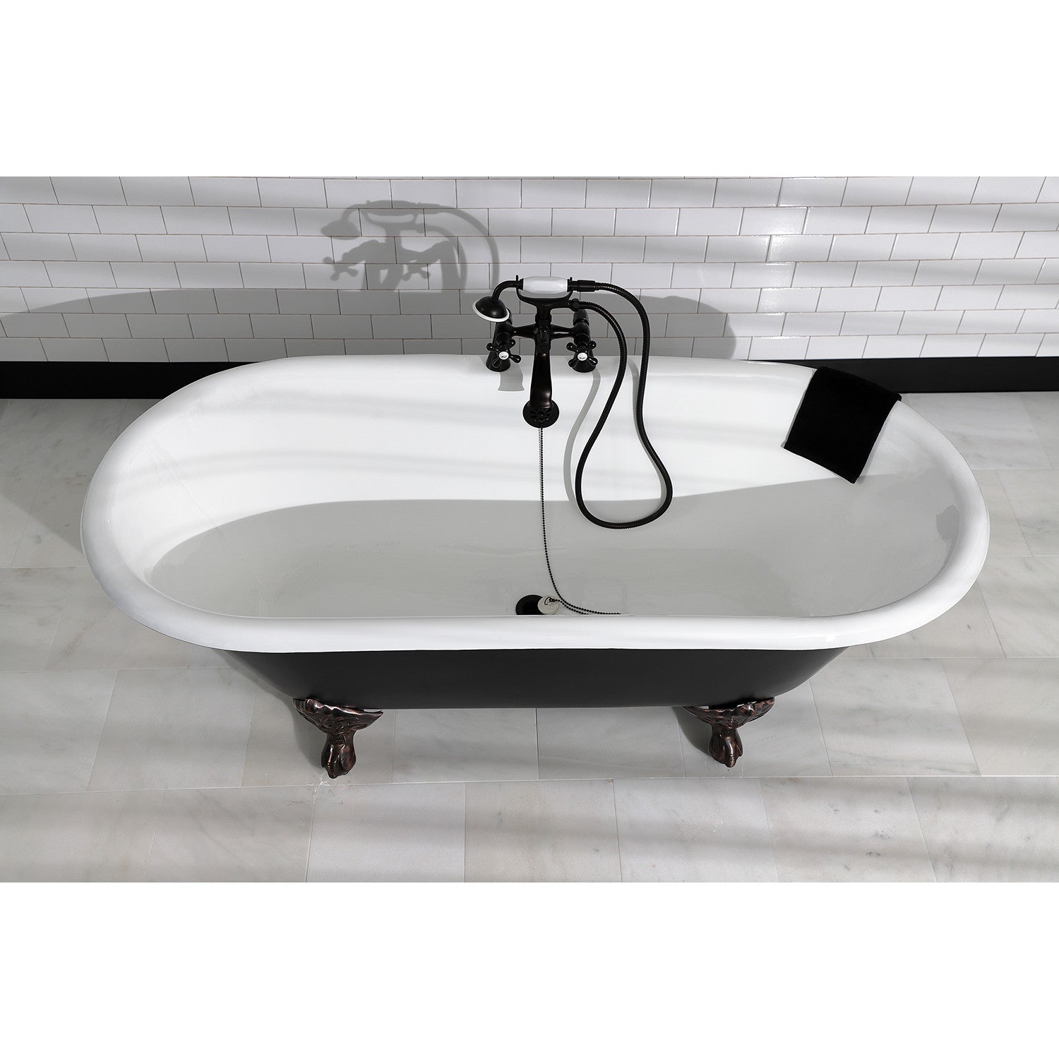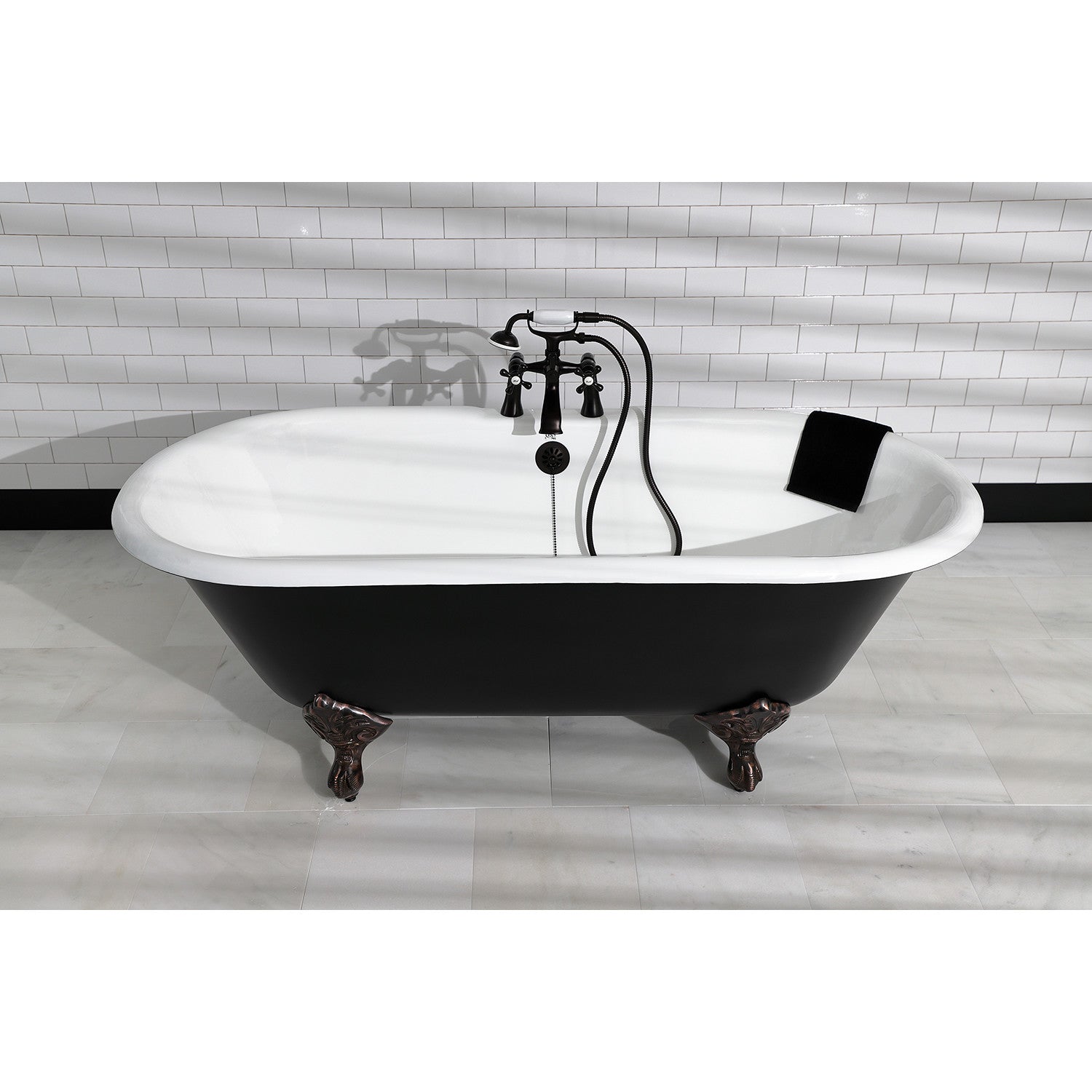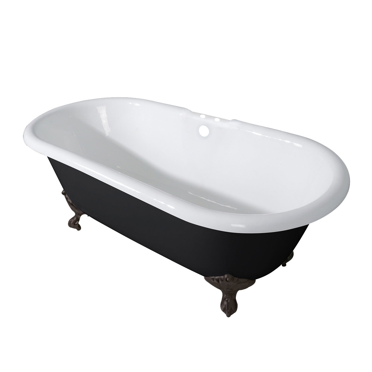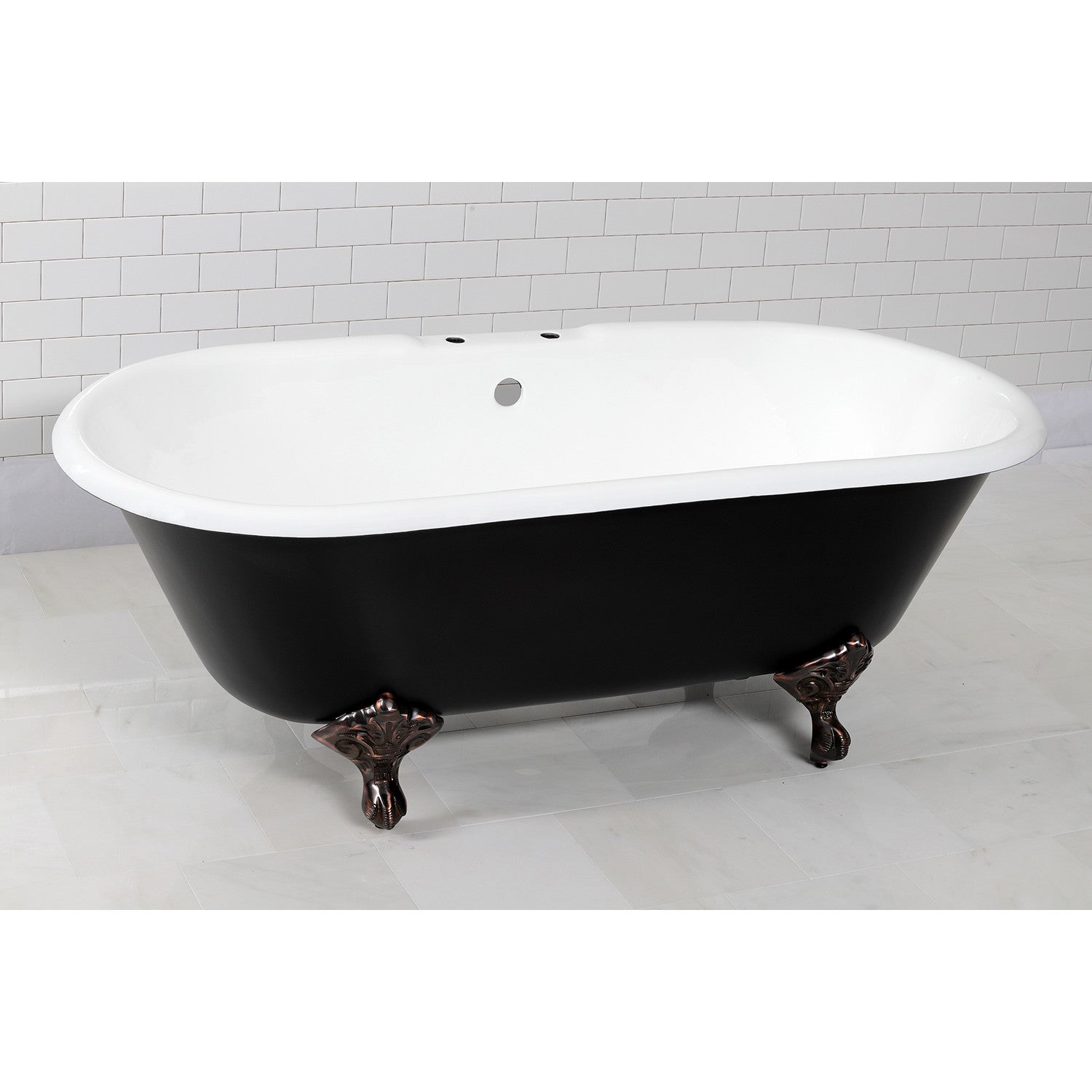 Aqua Eden VBT7D663013NB5 66-Inch Cast Iron Double Ended Clawfoot Tub with 7-Inch Faucet Drillings, Black/White/Oil Rubbed Bronze
