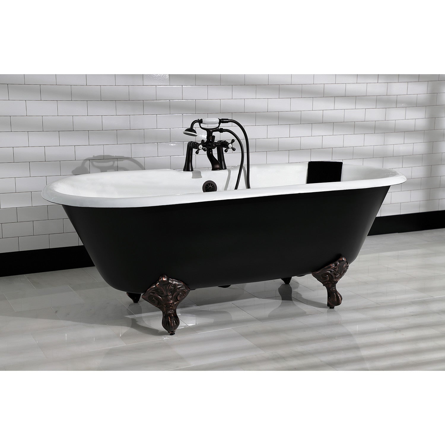 - Bathtub (but not feet) exterior finished in matte black, interior and rim finished in glossy white enamel