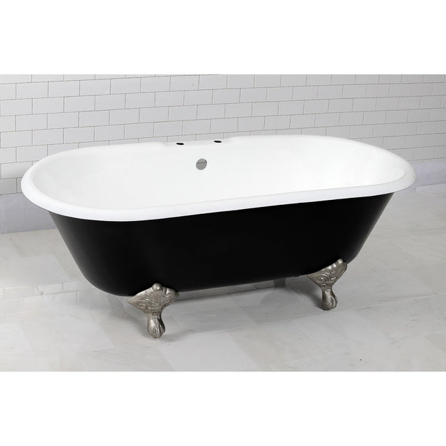 Aqua Eden VBT7D663013NB8 66-Inch Cast Iron Double Ended Clawfoot Tub with 7-Inch Faucet Drillings, Black/White/Brushed Nickel