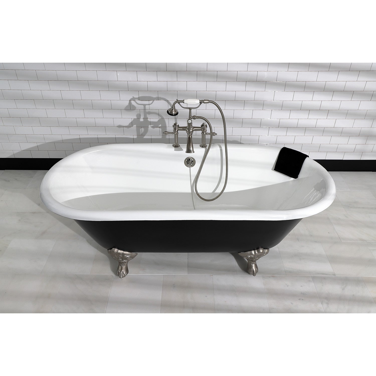 - Bathtub (but not feet) exterior finished in matte black, interior and rim finished in glossy white enamel