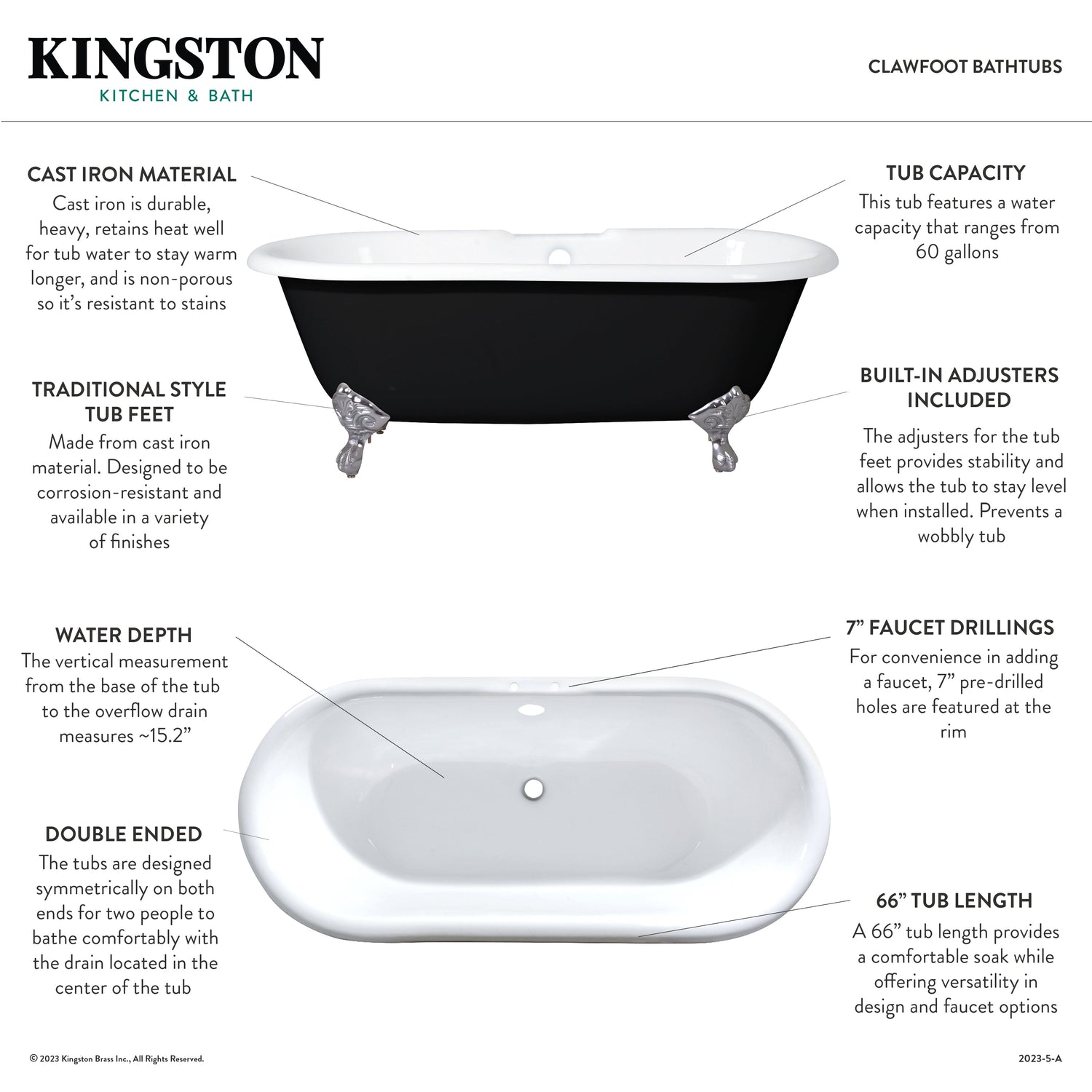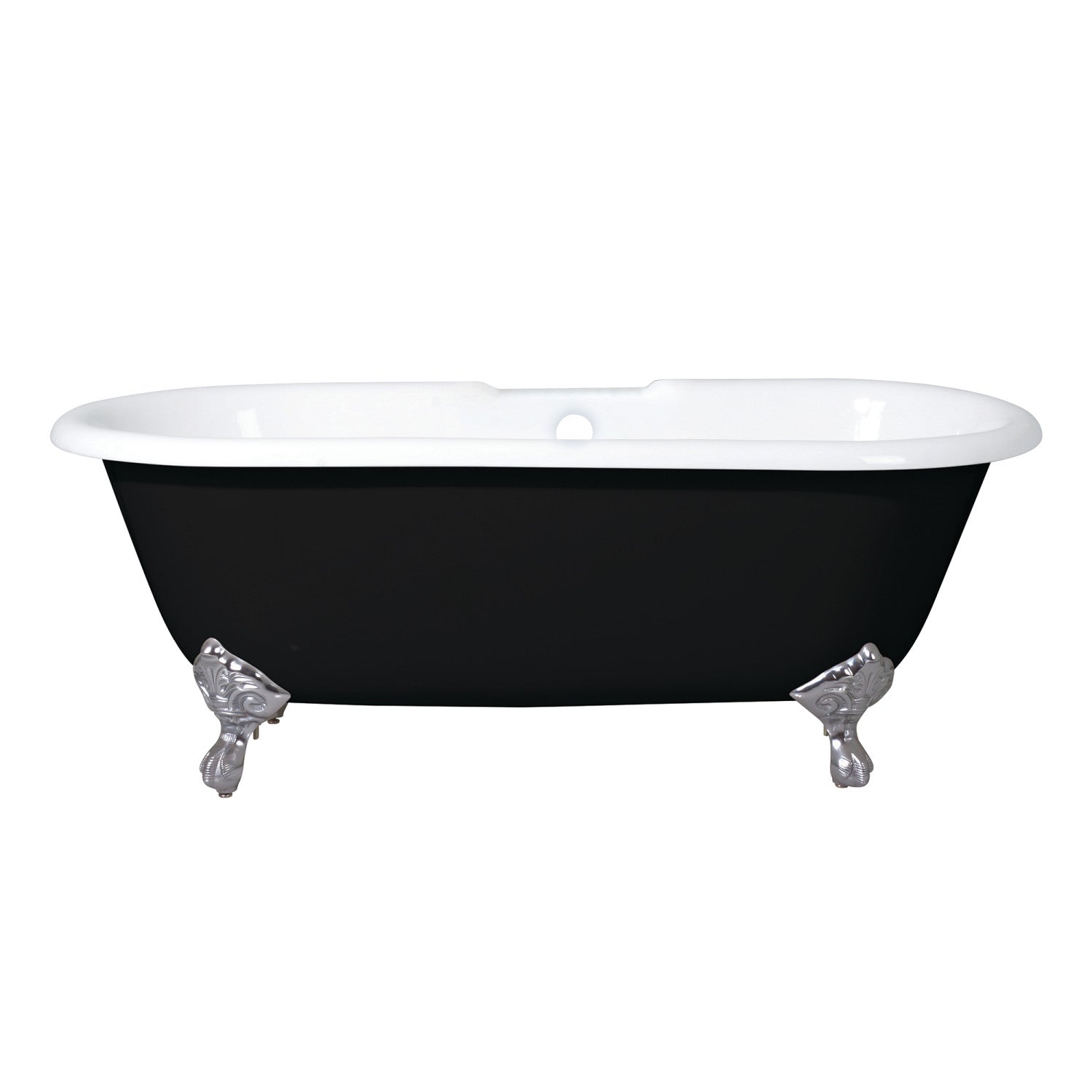 Surround yourself with the perfumed aroma of your favorite candle, grab your favorite piece of literature, and soak all of the stresses of the day away with the all-encompassing embrace of one of Kingston Brass' finest products, the clawfoot tub. Since the late 19th century, the claw foot tub has stood prominent among bathroom fixtures for its outstanding grandeur. The Kingston Brass Aqua Eden black 66-inch cast iron double ended clawfoot tub with 7-inch faucet drillings will wholly beautify your home for years to come thanks to its durable and heavy cast iron construction. Elegantly crafted clawfoot tub feet are included to further elevate your home's traditional eminence. This bathtub features a striking and bold matte black exterior, a classic, durable, easy to clean glossy white enameled interior and rim, and of course finish matched feet.