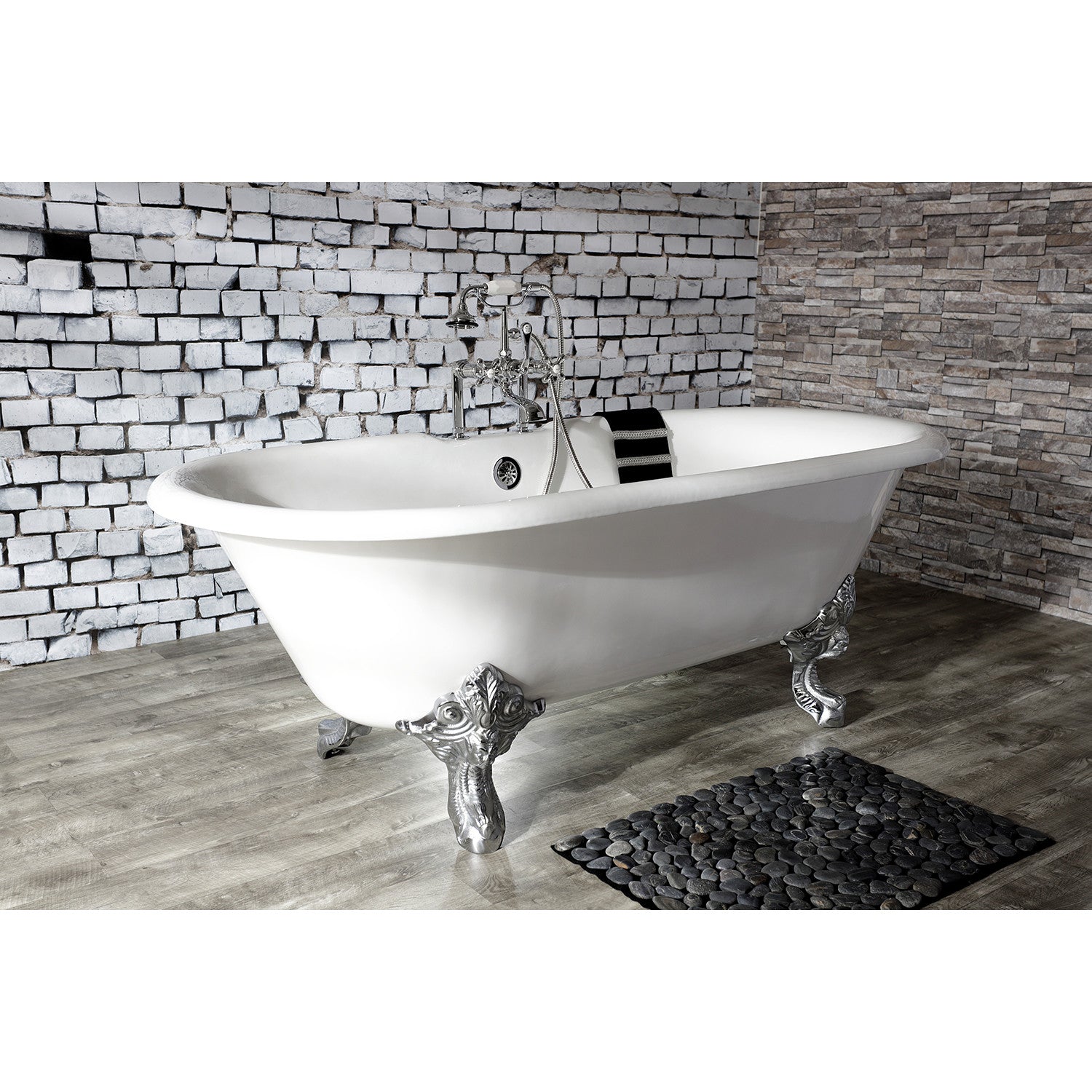 Surround yourself with the perfumed aroma of your favorite candle, grab your favorite piece of literature, and soak all of the stresses of the day away with the all-encompassing embrace of one of Kingston Brass' finest products, the clawfoot tub. Since the late 19th century, the claw foot tub has stood prominent among bathroom fixtures for its outstanding grandeur. The Kingston Brass Aqua Eden 72-inch cast iron double ended clawfoot tub with 7-inch faucet drillings will wholly beautify your home for years to come thanks to its durable and heavy cast iron construction. Elegantly crafted clawfoot tub feet are included to further elevate your home's traditional eminence. Aside from its feet, this bathtub is enameled in glossy white for a classic look, exceptional durability, and easy care and maintenance for years to come.