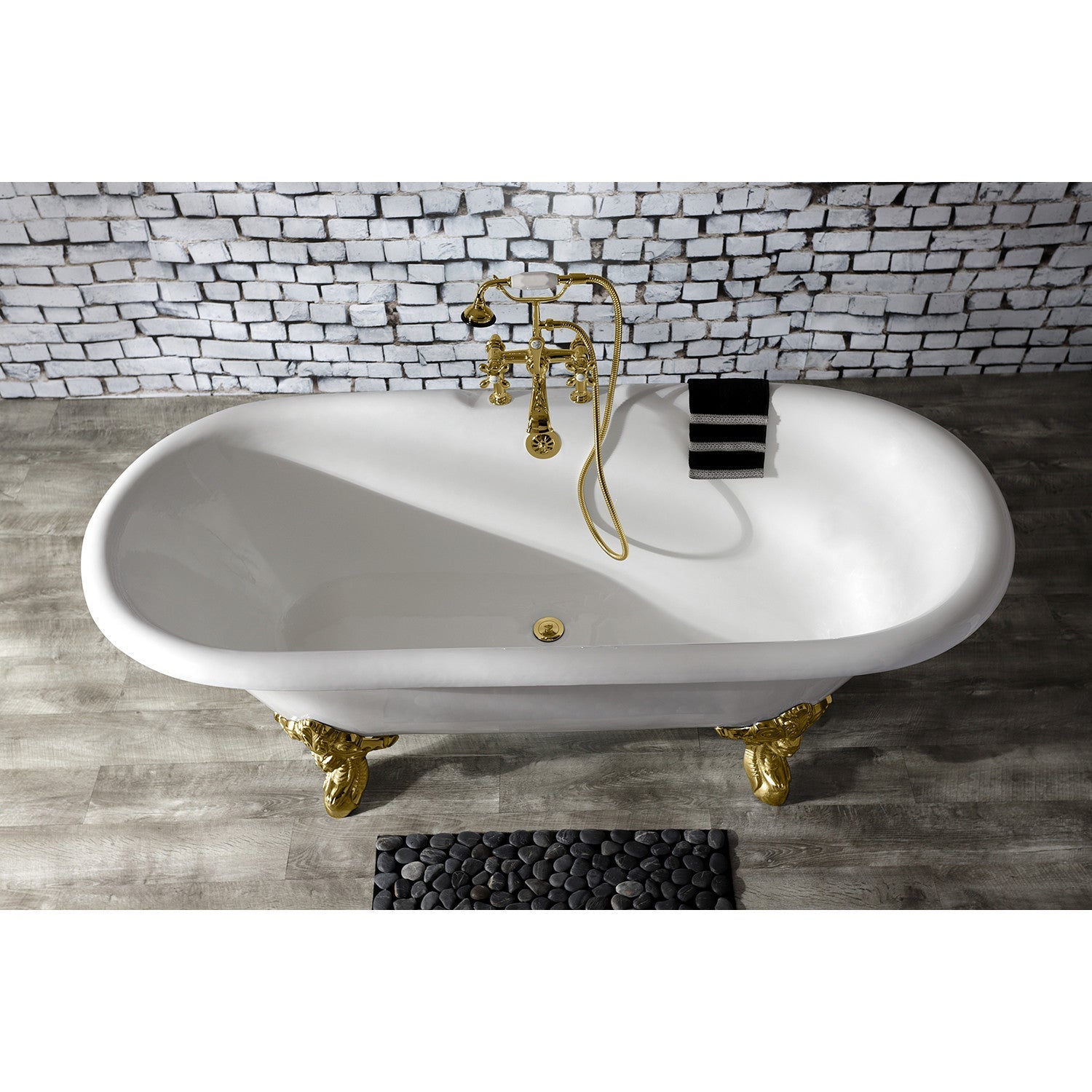 Aqua Eden VCT7DE7232NL2 72-Inch Cast Iron Double Ended Clawfoot Tub with 7-Inch Faucet Drillings, White/Polished Brass