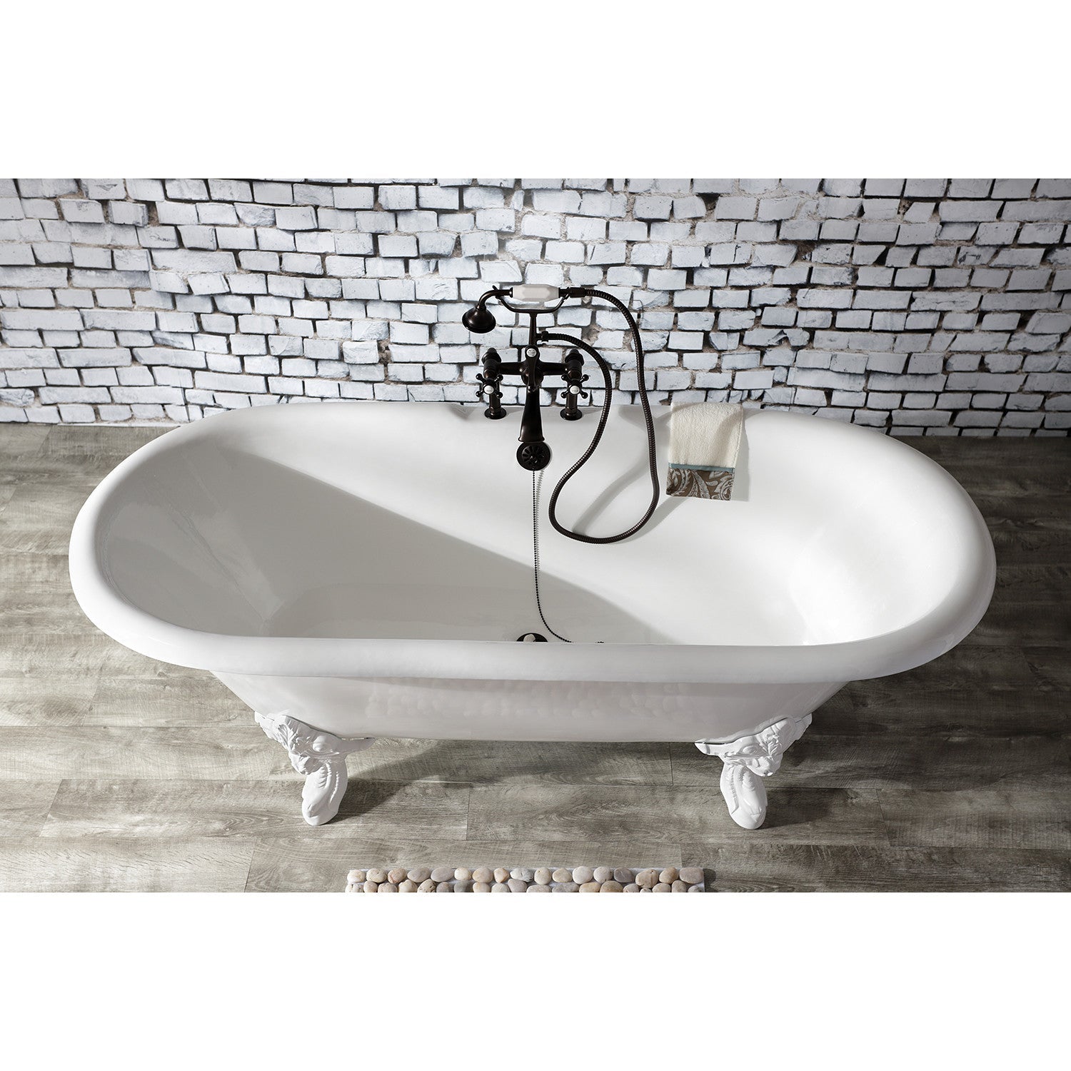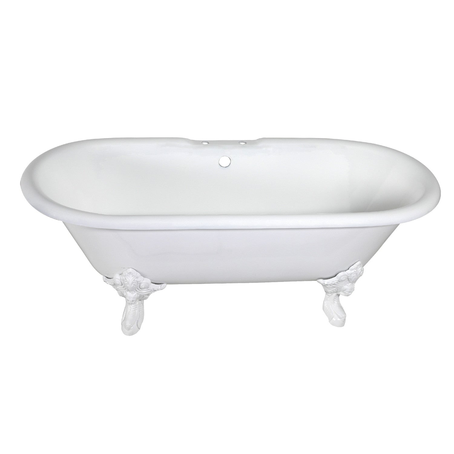 Surround yourself with the perfumed aroma of your favorite candle, grab your favorite piece of literature, and soak all of the stresses of the day away with the all-encompassing embrace of one of Kingston Brass' finest products, the clawfoot tub. Since the late 19th century, the claw foot tub has stood prominent among bathroom fixtures for its outstanding grandeur. The Kingston Brass Aqua Eden 72-inch cast iron double ended clawfoot tub with 7-inch faucet drillings will wholly beautify your home for years to come thanks to its durable and heavy cast iron construction. Elegantly crafted clawfoot tub feet are included to further elevate your home's traditional eminence. This bathtub is enameled in glossy white for a classic look, exceptional durability, and easy care and maintenance for years to come, and its feet are a glossy white to match.