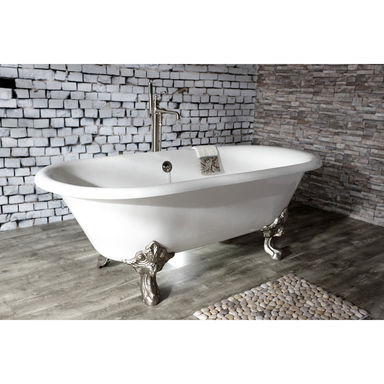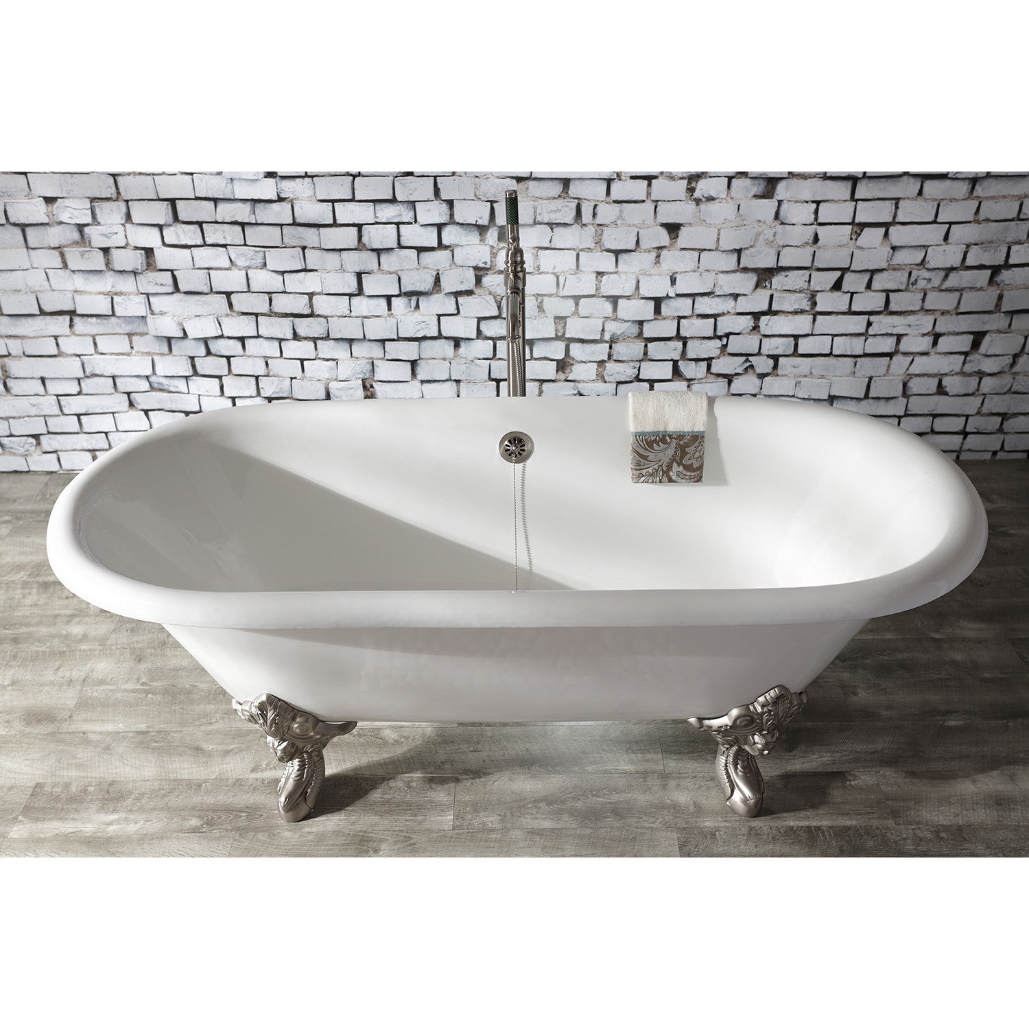 Aqua Eden VCTDE7232NL8 72-Inch Cast Iron Double Ended Clawfoot Tub (No Faucet Drillings), White/Brushed Nickel
