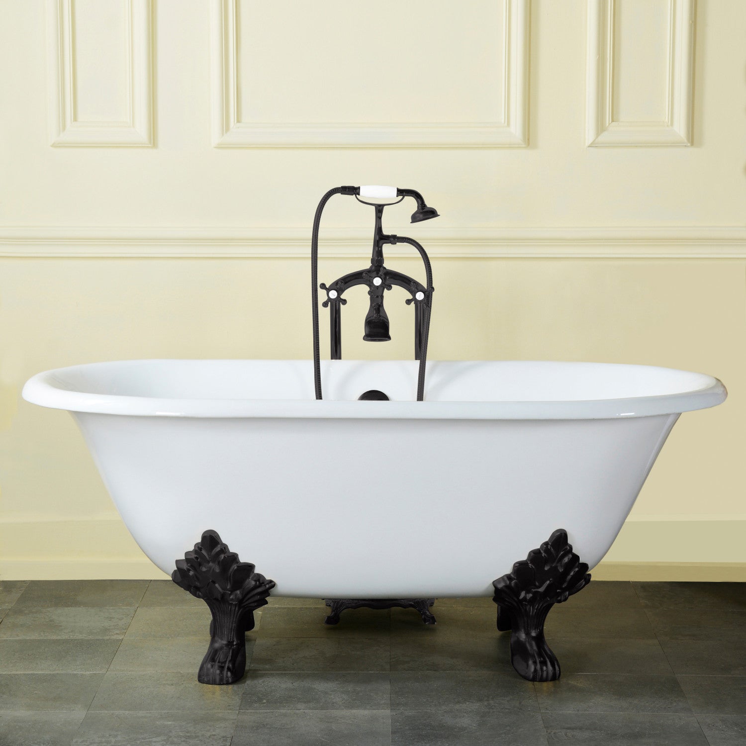 Surround yourself with the perfumed aroma of your favorite candle, grab your favorite piece of literature, and soak all of the stresses of the day away with the all-encompassing embrace of one of Kingston Brass' finest products, the clawfoot tub. Since the late 19th century, the claw foot tub has stood prominent among bathroom fixtures for its outstanding grandeur. The Kingston Brass Aqua Eden 60-inch cast iron double ended clawfoot tub (no faucet drillings) will wholly beautify your home for years to come thanks to its durable and heavy cast iron construction. Elegantly crafted clawfoot tub feet are included to further elevate your home's traditional eminence. Aside from its feet, this bathtub is enameled in glossy white for a classic look, exceptional durability, and easy care and maintenance for years to come.