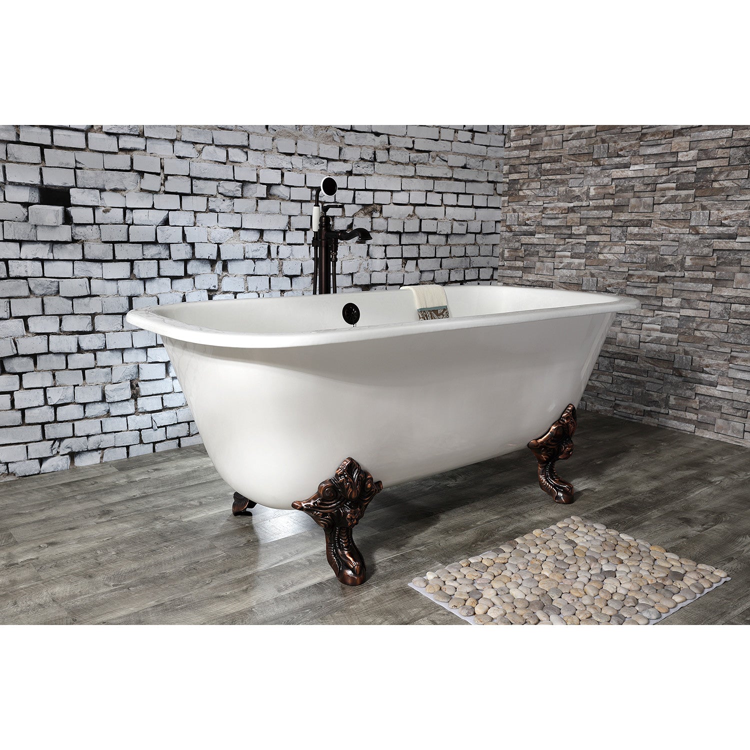 Aqua Eden VCTQND6732NL5 67-Inch Cast Iron Double Ended Clawfoot Tub (No Faucet Drillings), White/Oil Rubbed Bronze