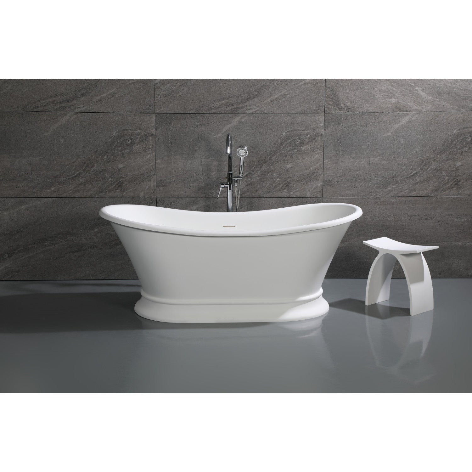 Arcticstone VRTDS683027 67-Inch Solid Surface White Stone Pedestal Tub with Drain, Matte White/Glossy White