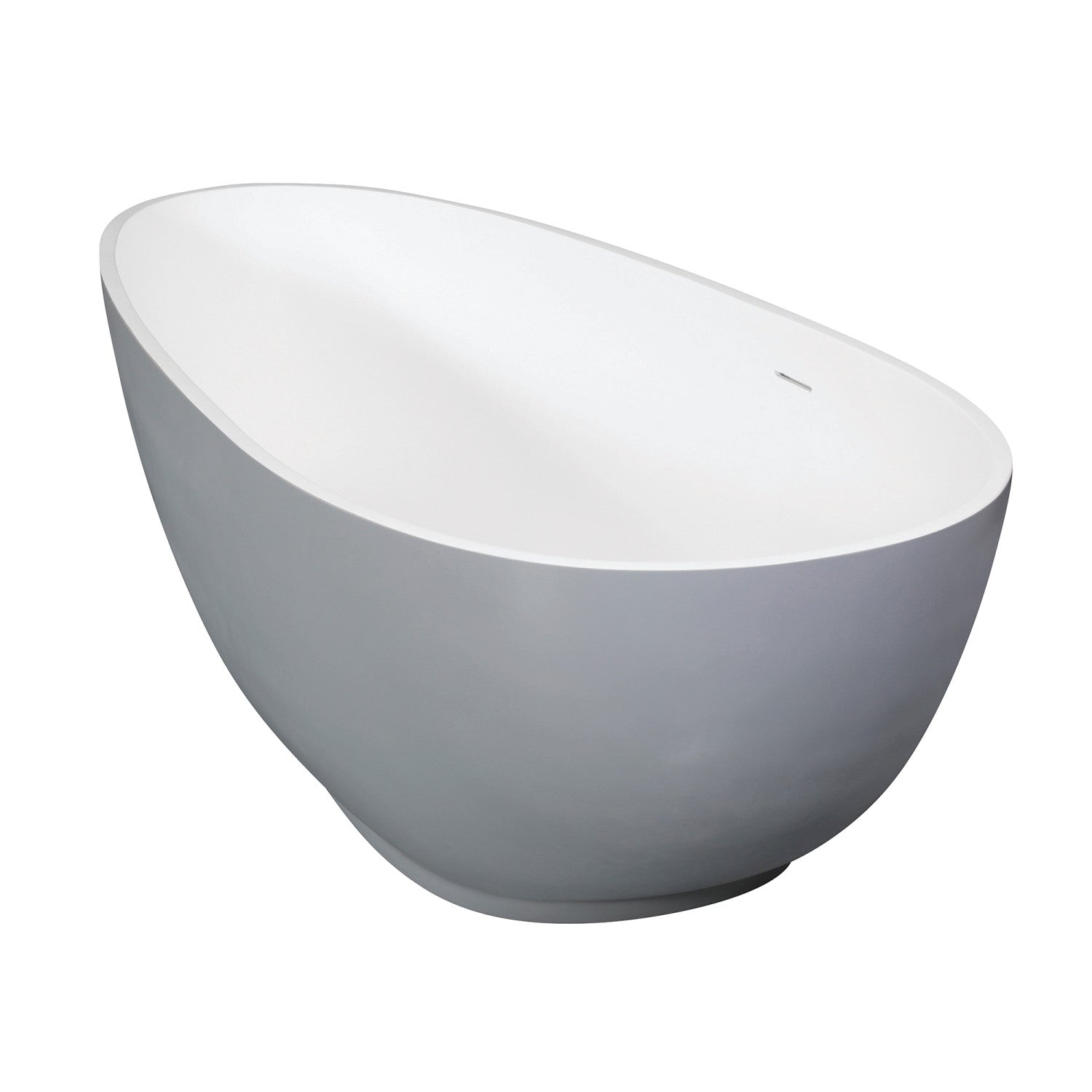 Elevate your home's contemporary decorum, while you effortlessly recline in the cozy embrace of a Kingston Brass freestanding bathtub. Highly acclaimed for its clean and contemporary yet minimalist shape, this tub will be made the focal point in many bathrooms. The Aqua Eden Arcticstone 67-inch egg shaped solid surface freestanding tub wholly beautify your home for years to come thanks to its durable and scratch resistant solid surface white stone construction. This bathtub's exterior is finished in a sultry matte grey to bring a uniquely sensual designer influence into your space, while its interior and inner rim are a polished glossy white to ensure simple care and cleaning over time.