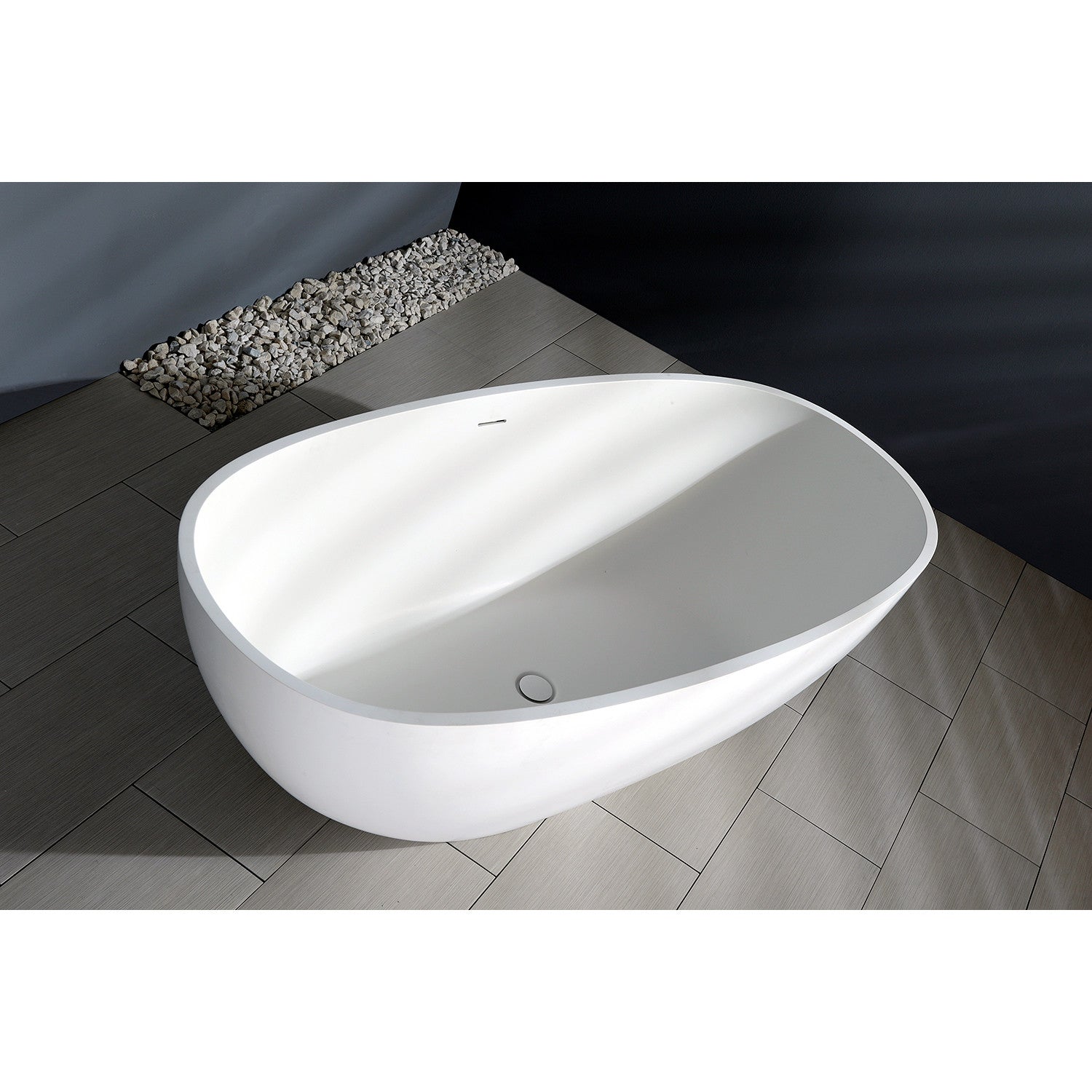 Elevate your home's contemporary decorum, while you effortlessly recline in the cozy embrace of a Kingston Brass freestanding bathtub. Highly acclaimed for its clean and contemporary yet minimalist shape, this tub will be made the focal point in many bathrooms. The Aqua Eden 65-Inch Solid Surface White Stone Freestanding Oval Tub with Drain will wholly beautify your home for years to come thanks to its durable and scratch resistant solid surface construction. This bathtub is finished inside and out in an elegant, high-design inspired matte white that brings subtle but unmistakable sophistication to the bathing experience.
