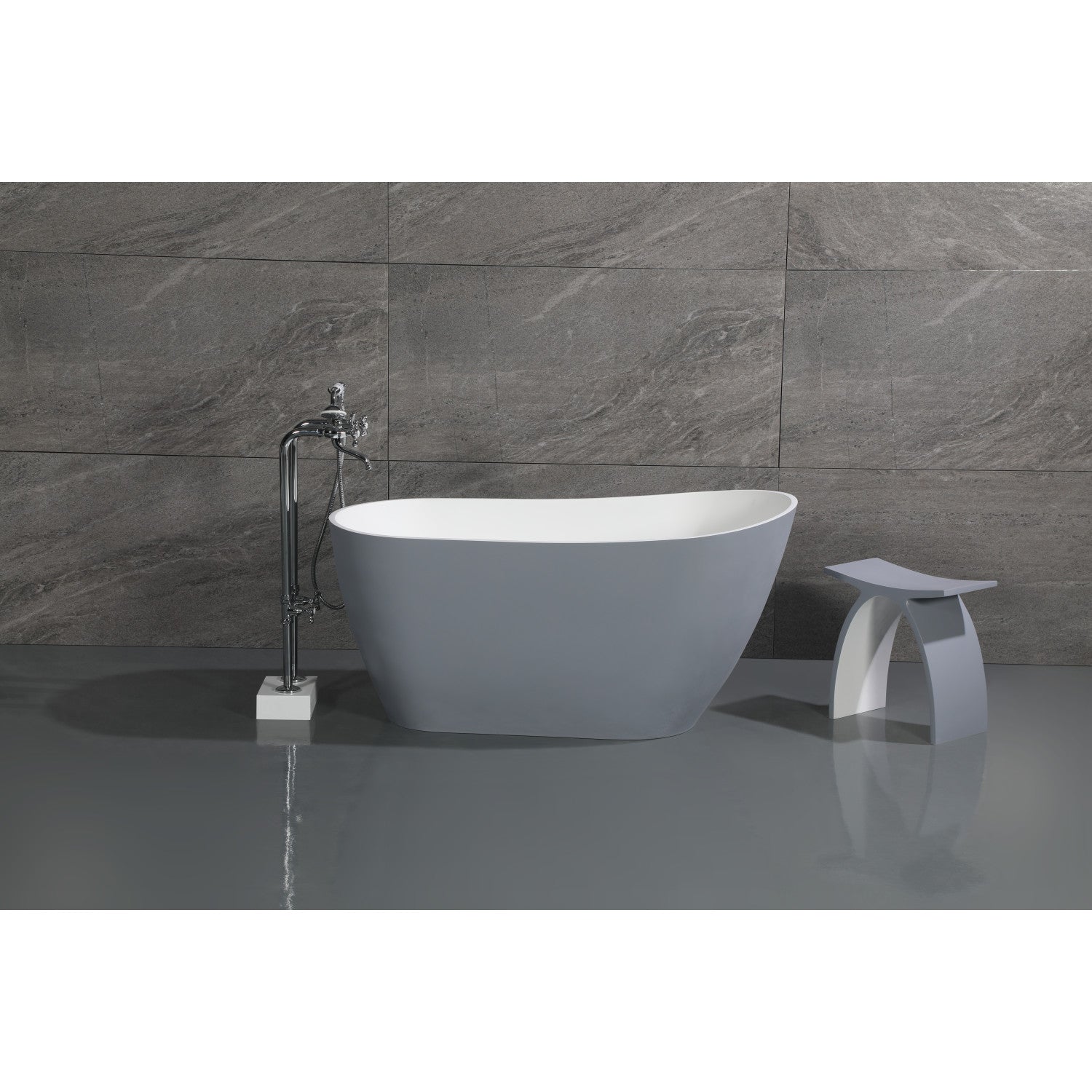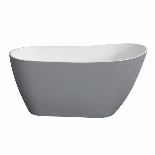 Arcticstone VRTSS513026WG 52-Inch Slipper Solid Surface Freestanding Tub with Drain, Glossy White/Matte Gray