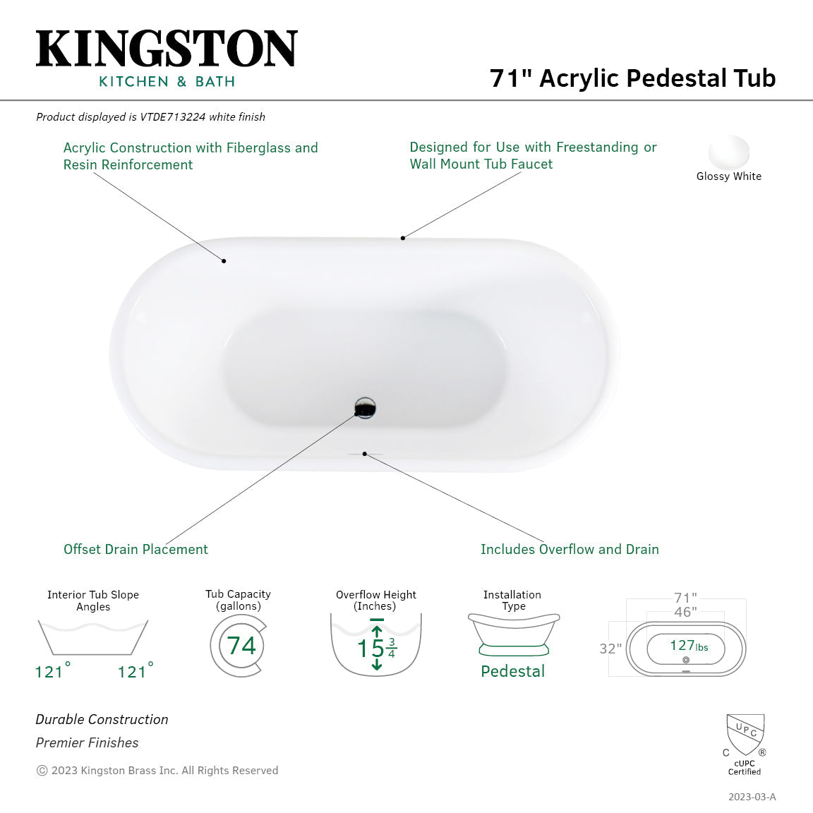 Aqua Eden VTDE713224 71-Inch Acrylic Double Ended Pedestal Bathtub with Drain, Glossy White