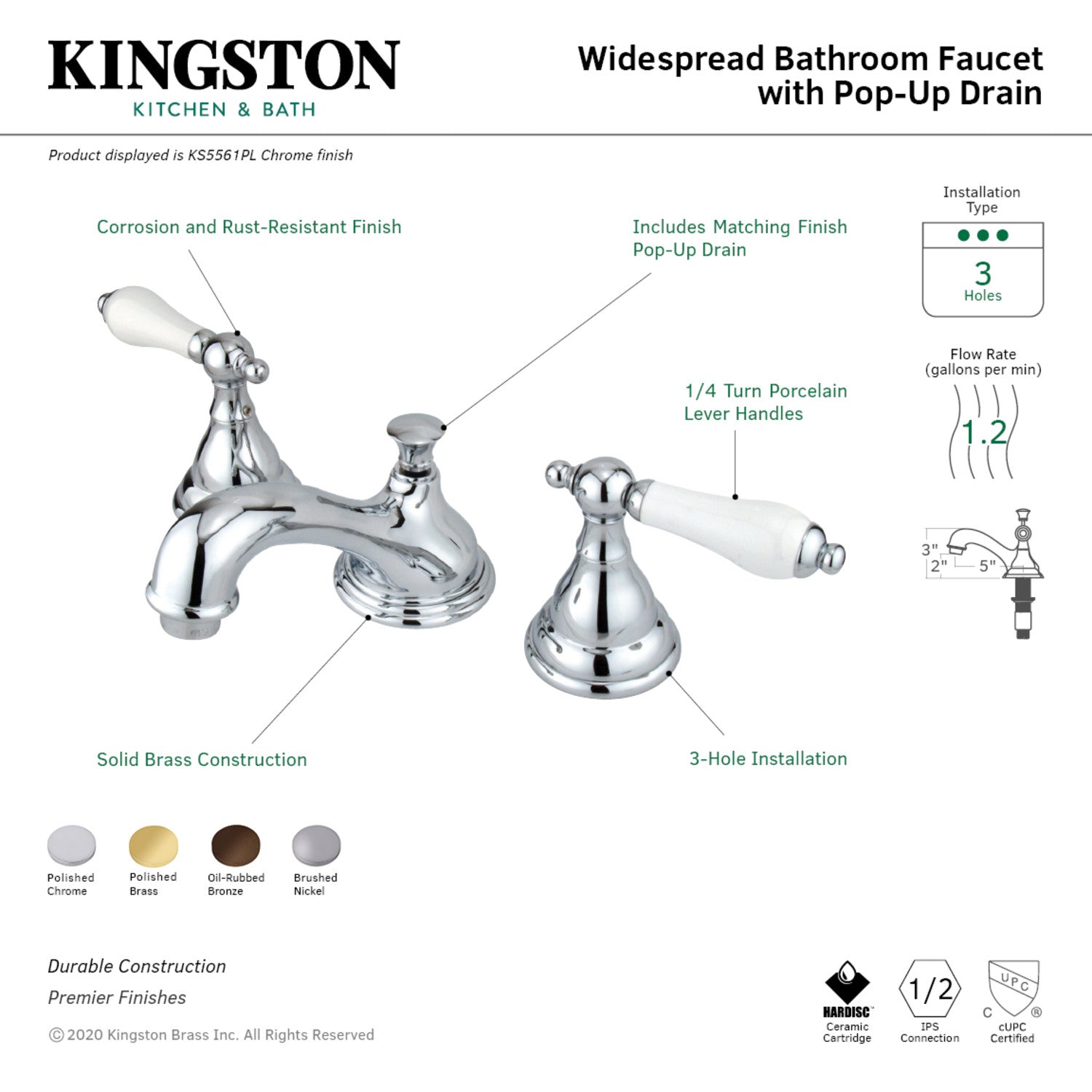 Mimic the stunning stylings of European households in your own home with this faucet's nod towards traditionalism. Ideal for more spacious bathrooms, widespread faucets are more spread apart and feature a 3-hole installation. The Royale 8-inch widespread bathroom faucet with brass pop-up and its featured sturdy brass construction and premium polished brass finish are guaranteed to glamorize your home's traditional ensemble for years to come. By immersing your home with this faucet, anyone may feel like nobility. A matching finish drain is also included.