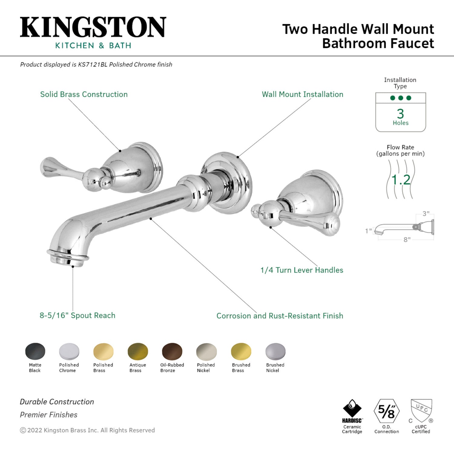 Kingston Brass KS7123BL 8-Inch Center Wall Mount Bathroom Faucet, Antique Brass