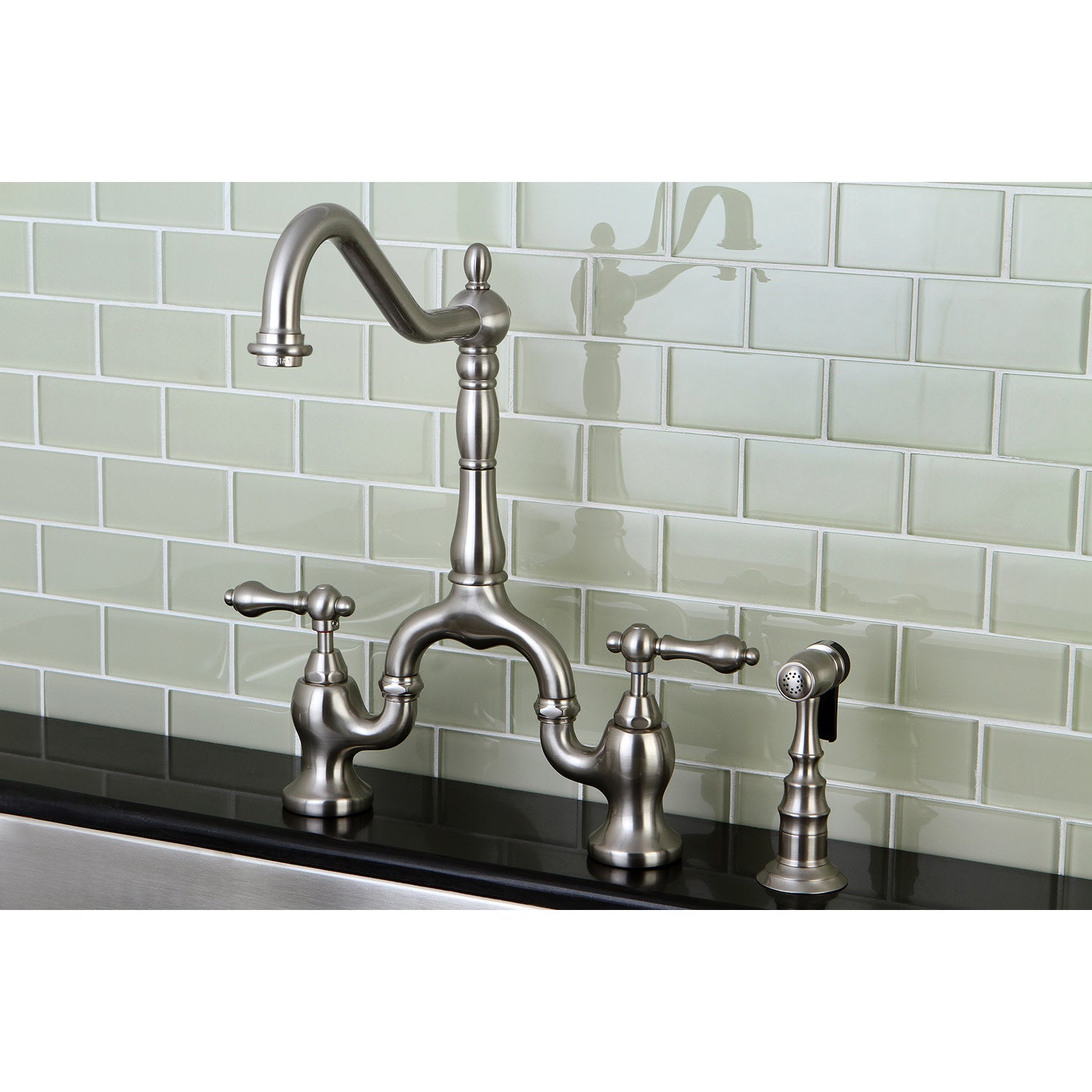 Kingston Brass KS7758ALBS English Country Kitchen Bridge Faucet with Brass Sprayer, Brushed Nickel