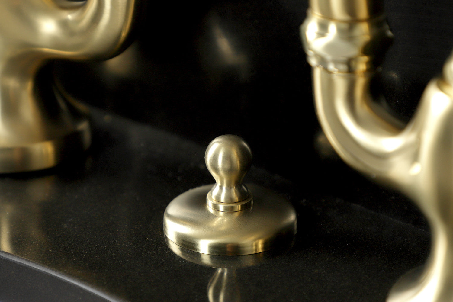 Embody the extravagance of 18th century Europe by adorning your house with the traditional elegance offered by this faucet. Elegantly designed, the exquisite arch connecting the spout to the handles provides an added aesthetic appeal to make for more of a statement piece. Additionally, the 8-3/8 inch of spout clearance make for a very easy hand washing experience with plenty of room for other tasks. The English Country Bathroom Faucet with Brass Pop-Up and its featured sturdy brass construction and premium brushed brass finish are guaranteed to glamorize your home's traditional ensemble for years to come. A matching finish drain is also included.