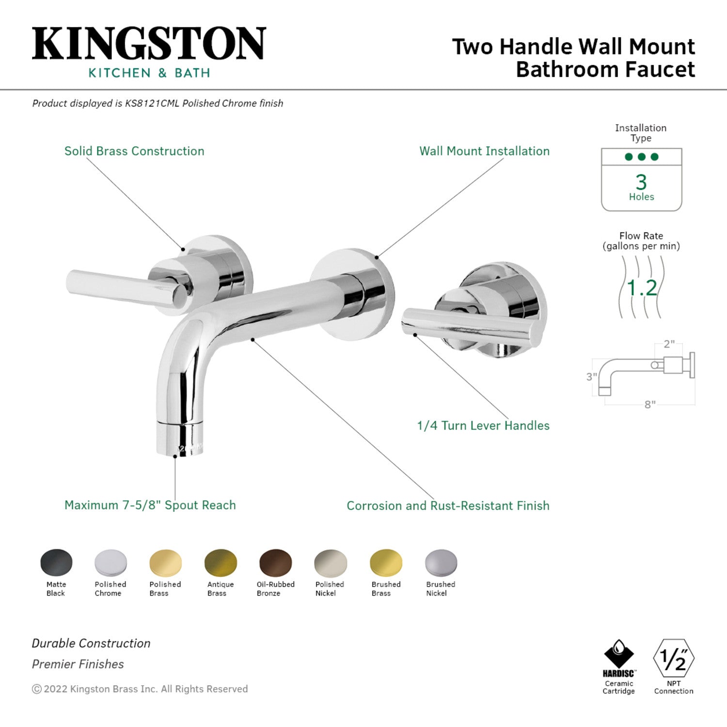 Kingston Brass KS8126CML Manhattan 2-Handle 8 in. Wall Mount Bathroom Faucet, Polished Nickel