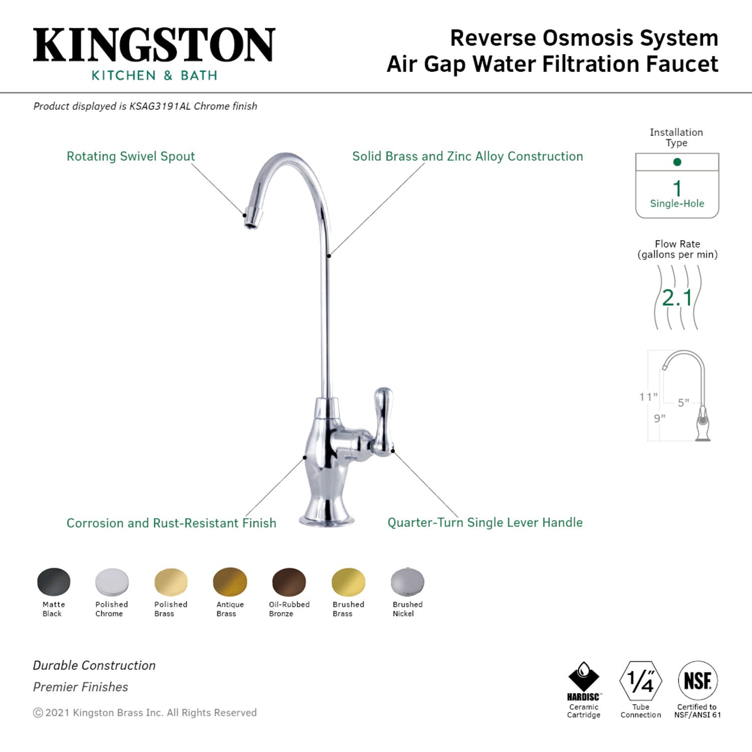 Kingston Brass KSAG3193AL Restoration Reverse Osmosis System Filtration Water Air Gap Faucet, Antique Brass