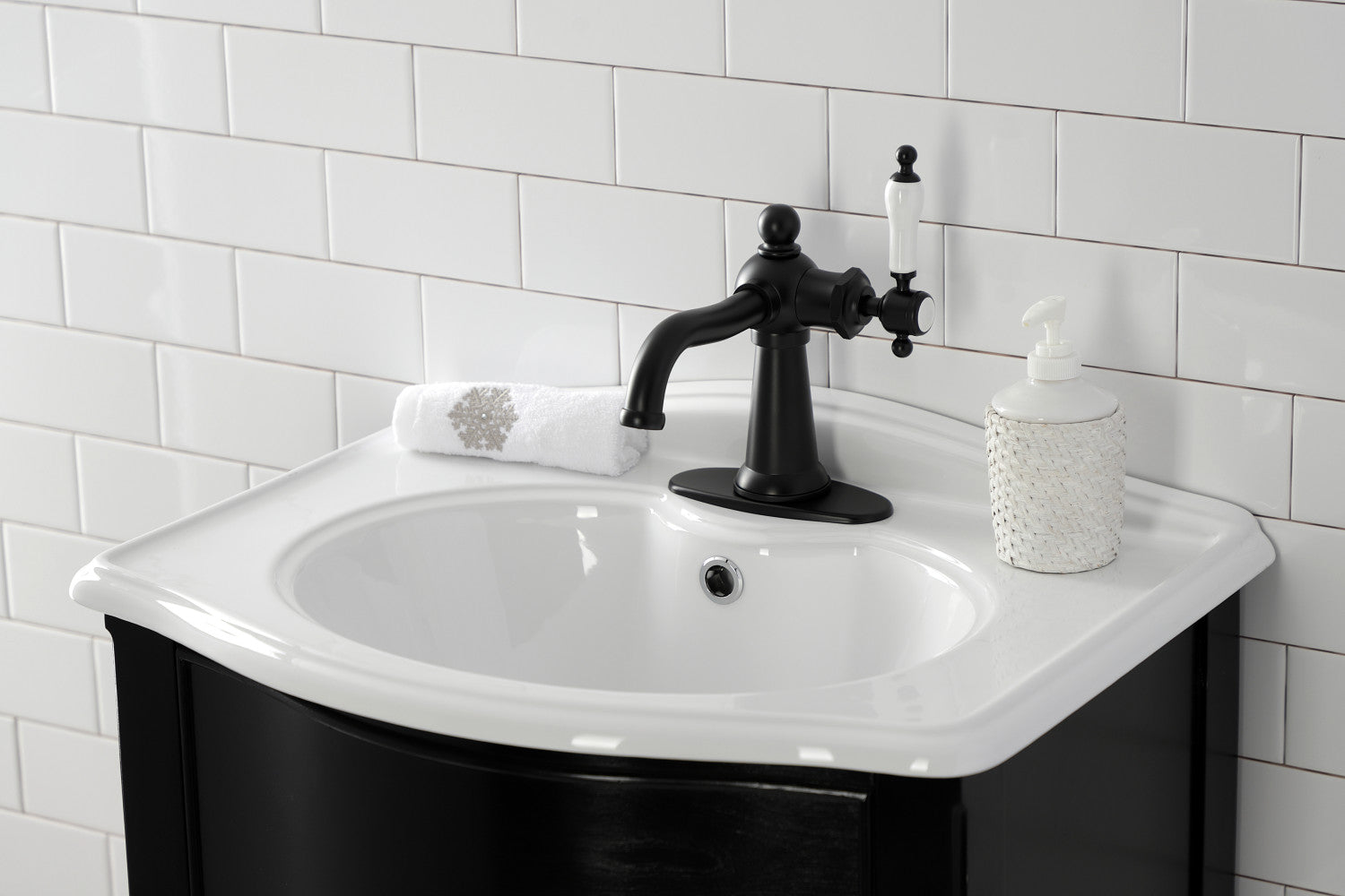 The exquisite design of this faucet tastefully flatters the elegant architecture of traditional homes with its fine detailing. Single-hole bathroom faucets provide a more streamlined look. Also, they will allow your bathroom to appear more spacious with the limited counter space they require. The Nautical single-handle bathroom faucet with push pop-up and its featured sturdy brass construction and premium matte black finish are guaranteed to glamorize your home's traditional ensemble for years to come. A matching finish drain is also included.