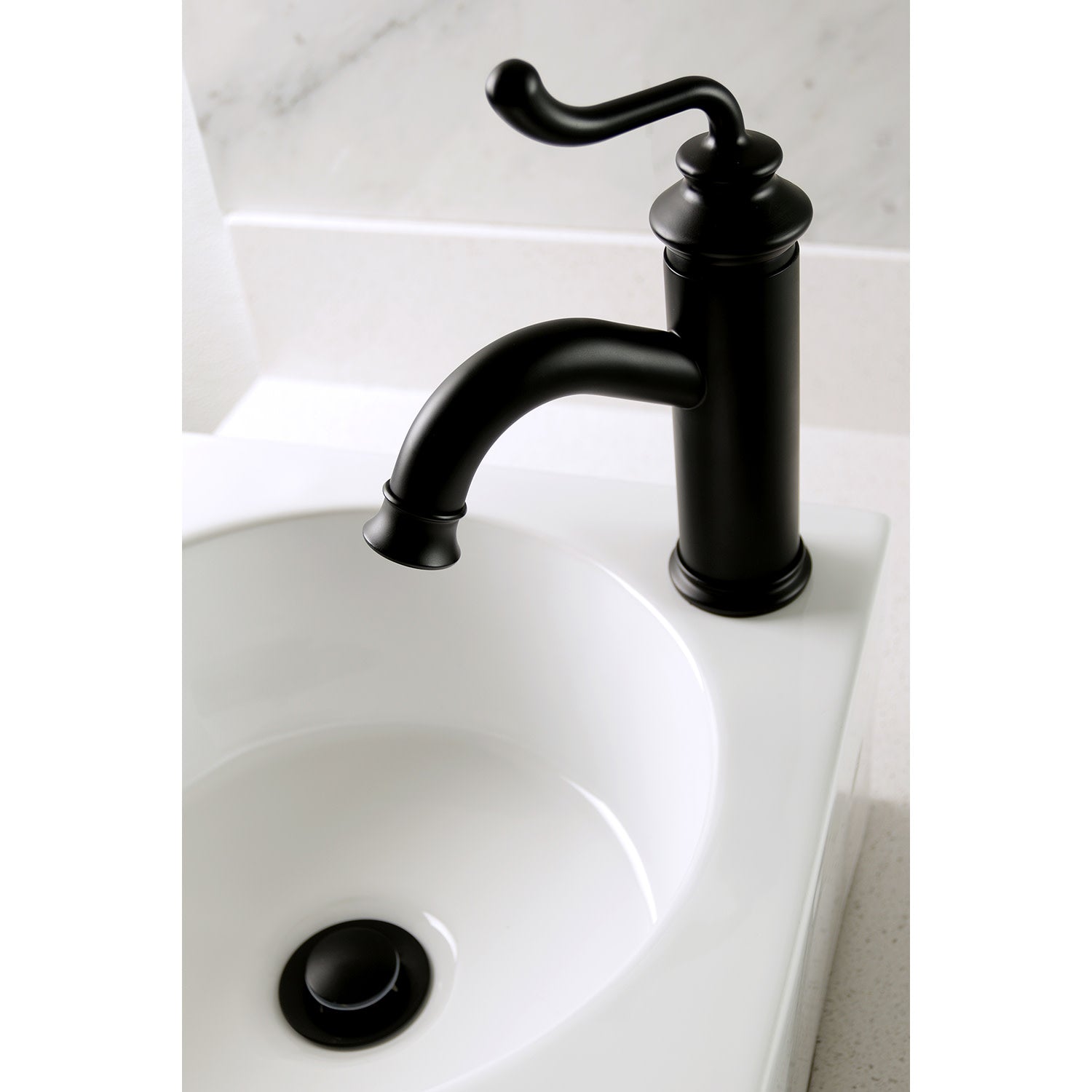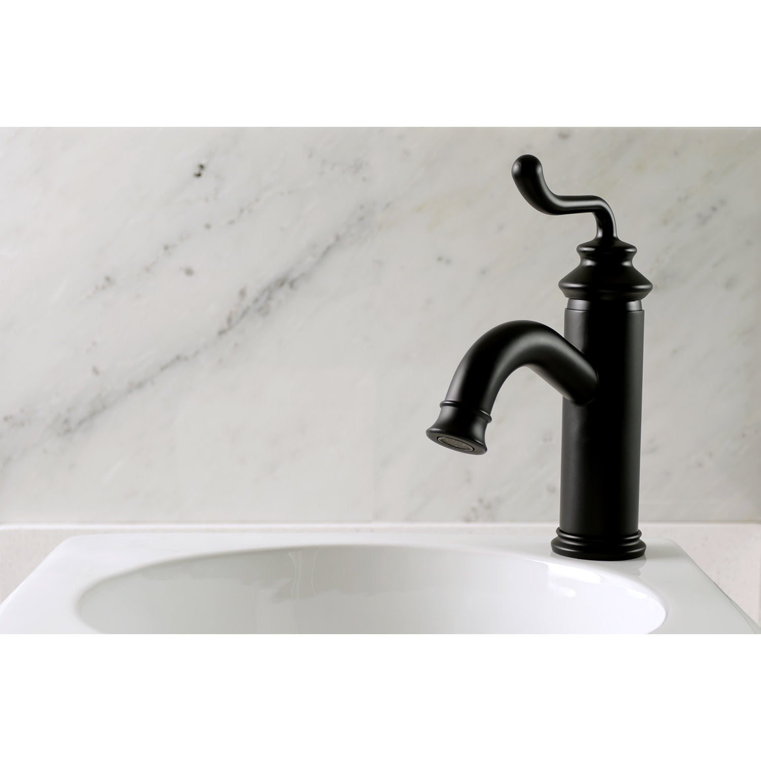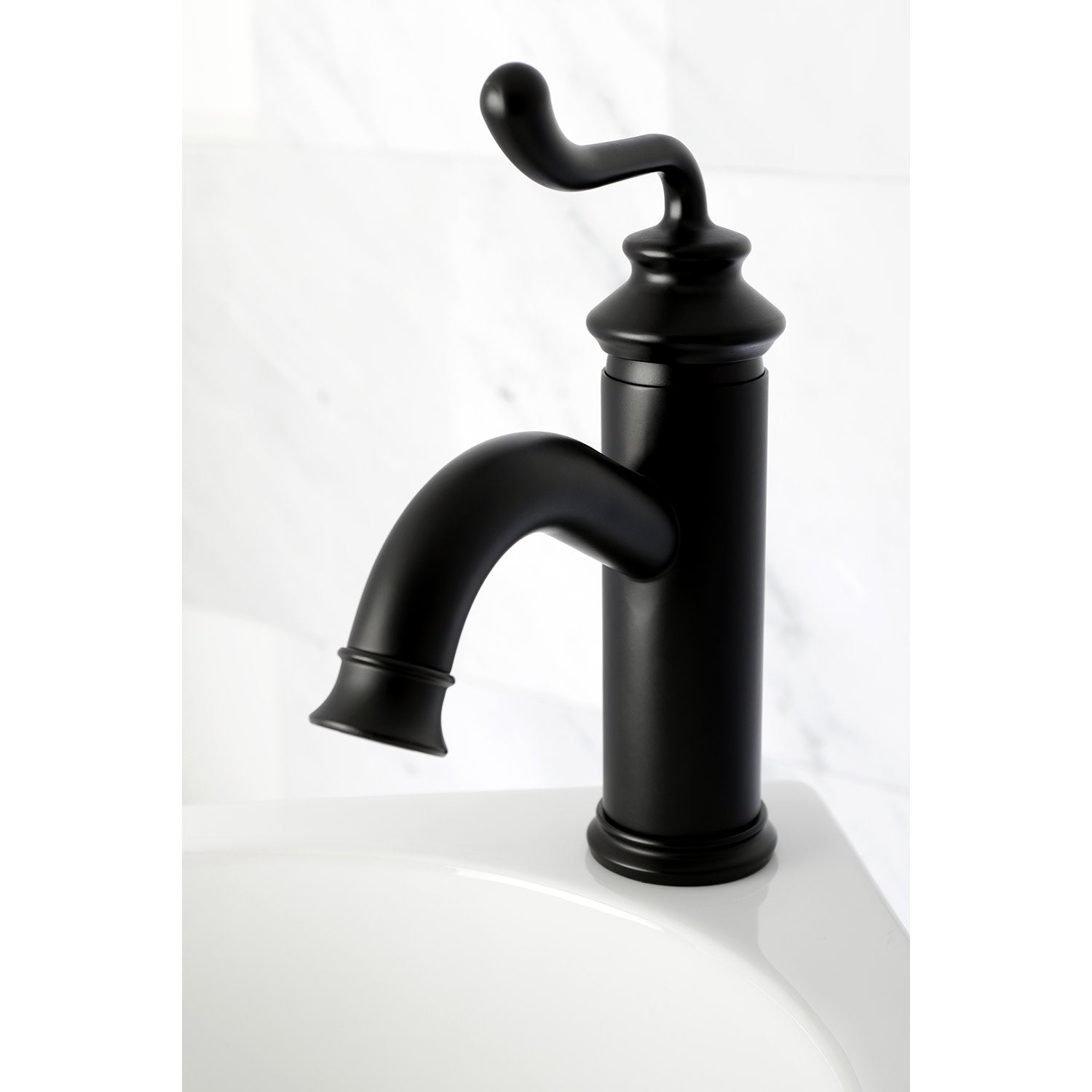 Mimic the stunning stylings of European households in your own home with this faucet's nod towards traditionalism. Single-hole bathroom faucets provide a more streamlined look. Also, they will allow your bathroom to appear more spacious with the limited counter space they require. The Royale single-handle monoblock bathroom faucet and its featured sturdy brass construction and premium matte black finish are guaranteed to glamorize your home's traditional ensemble for years to come. By immersing your home with this faucet, anyone may feel like nobility. A matching finish drain is also included.