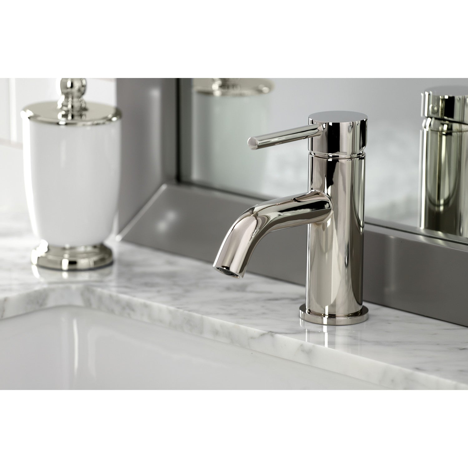This faucet boasts bold, sleek design with its cylindrical styling. Single-hole bathroom faucets provide a more streamlined look. Also, they will allow your bathroom to appear more spacious with the limited counter space they require. The Concord single-handle bathroom faucet and its featured sturdy brass construction and premium polished nickel finish are guaranteed to glamorize your home's modern ensemble for years to come. Flash the radical brilliance of contemporary trends with this statement piece. A matching finish drain is also included.