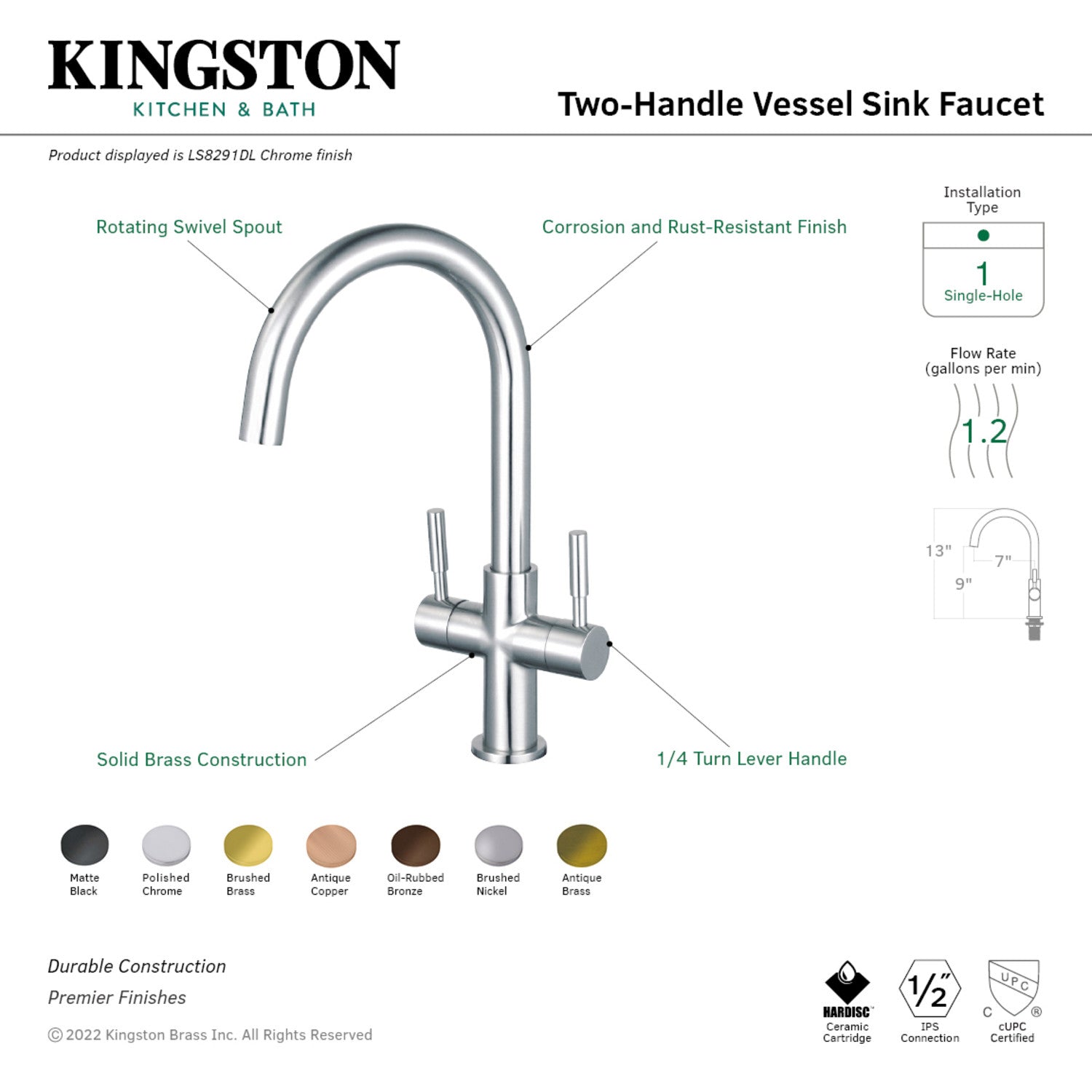 Fauceture LS8298DL Concord Two-Handle Vessel Faucet, Brushed Nickel