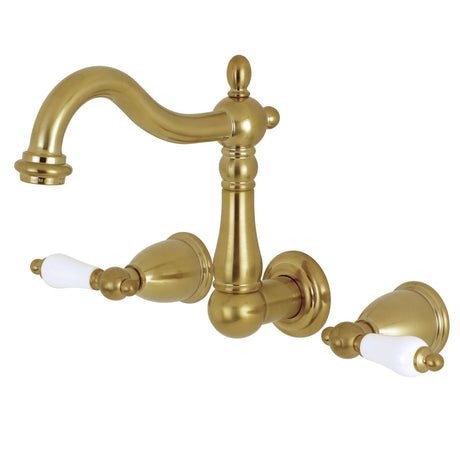 Heritage KS1257PL Two-Handle 3-Hole Wall Mount Bathroom Faucet, Brushed Brass