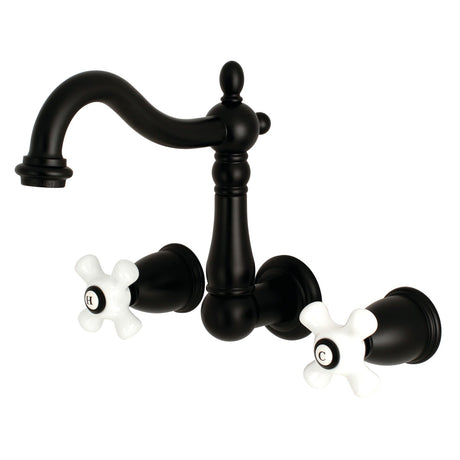 Heritage KS1250PX Two-Handle 3-Hole Wall Mount Bathroom Faucet, Matte Black