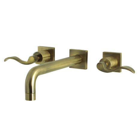 Heritage KS1253AL Two-Handle 3-Hole Wall Mount Bathroom Faucet, Antique Brass