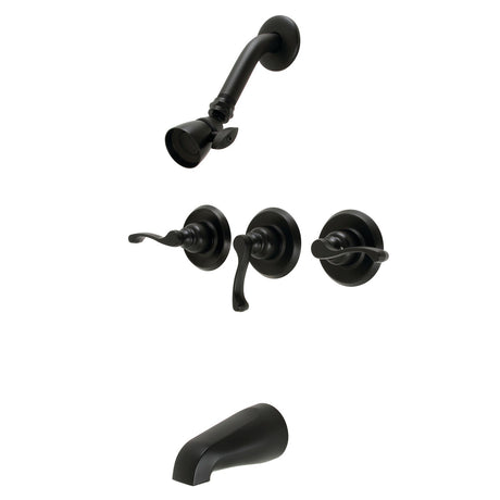 Royal KB230FL Three-Handle 5-Hole Wall Mount Tub and Shower Faucet, Matte Black
