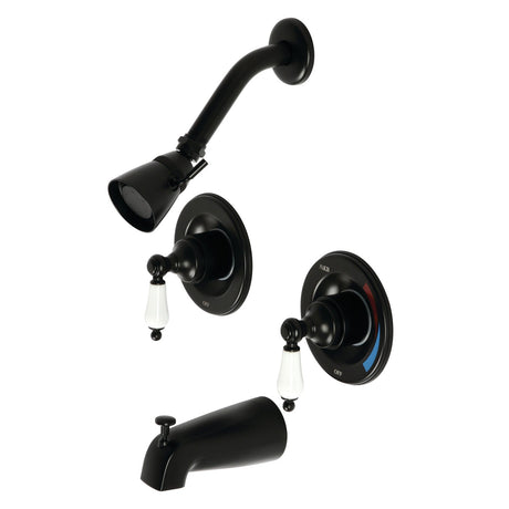 Vintage KB660PL Two-Handle 4-Hole Wall Mount Tub and Shower Faucet, Matte Black