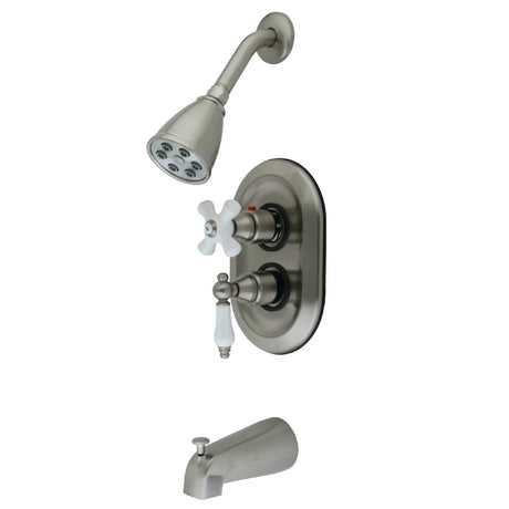 Restoration KS36380PL Two-Handle 3-Hole Wall Mount Tub and Shower Faucet, Bru...