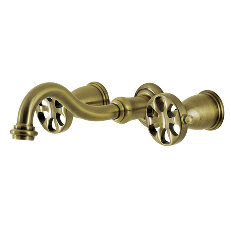 Belknap KS3123RX Two-Handle 3-Hole Wall Mount Bathroom Faucet, Antique Brass