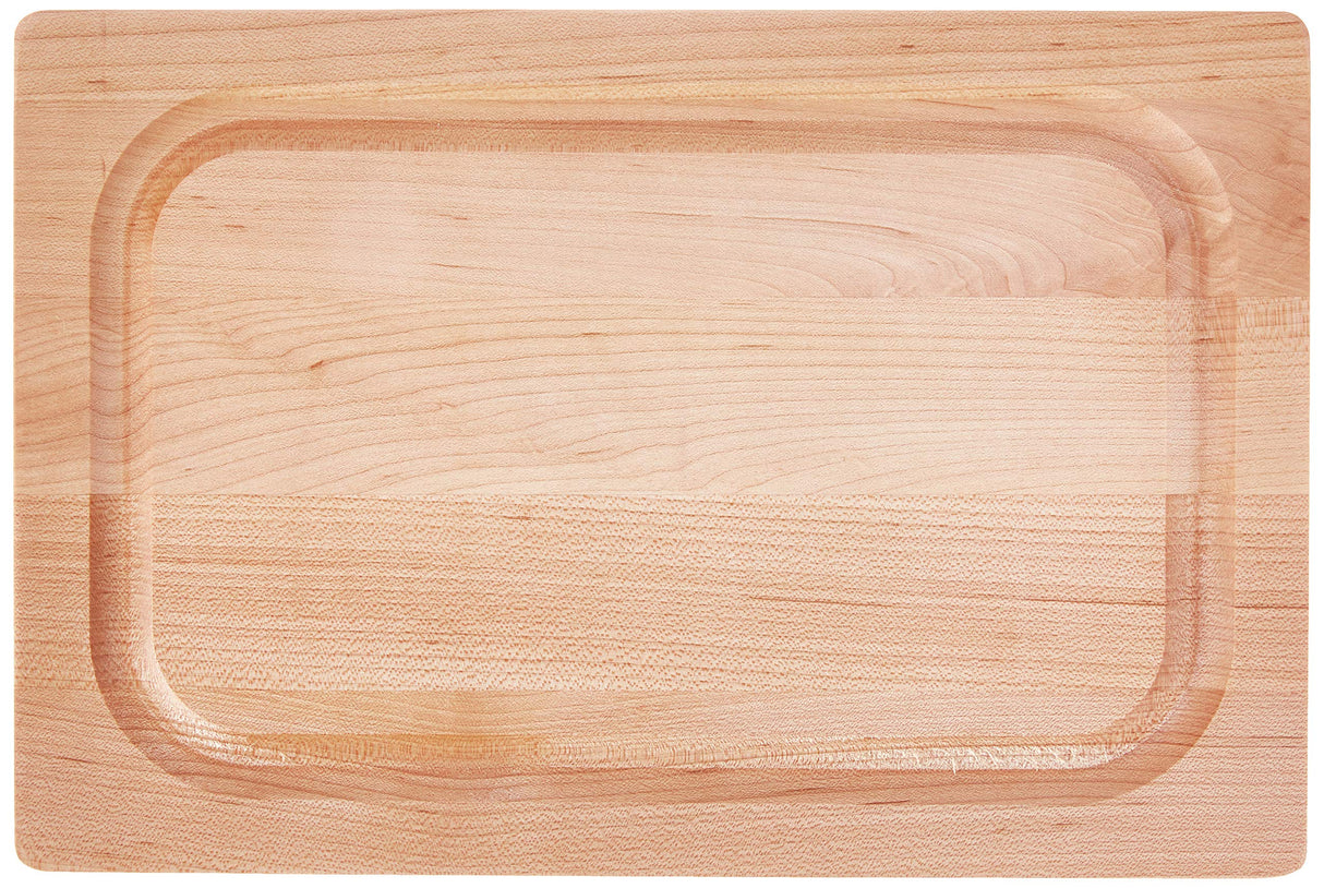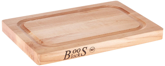 John Boos products are designed to meet the demanding expectations of commercial kitchens, and exceed the highest level of quality and food safety standards. Each board and block is made from sustainably harvested North American hardwoods, and offers a commercial grade cutting surface that protects the sharp edge on fine cutlery. Often imitated, John Boos and Co. is internationally known for its expertise in crafting American hardwoods into products of beauty, durability and function.Simple board care can ensure this heirloom, handcrafted board is a favorite in your kitchen for years to come. Every John Boos Board and Block comes with a food safe natural oil finish that helps protect the wood during transit. Once a month, apply an even coat of NSF Approved John Boos Mystery Oil (sold separately), and allow it to soak in overnight. Repeat this process more often when the board is brand new and “thirsty,” or if you live in a dry, arid climate. John Boos recommends applying John Boos Board Cream (also sold separately) to seal the top of the wood surface after applying the Mystery Oil. A few quick minutes of regular oil application will ensure your new board is properly seasoned, and ready for work! After use, wash board with warm, soapy water (all wooden cutting boards are not dishwasher safe and should not be soaked in water).Since 1887, every genuine John Boos cutting board and butcher block has been proudly made in Effingham, Illinois by skilled craftspeople using time honored techniques. Today, USA made John Boos cutting boards and butcher blocks are used and loved in commercial and home kitchens worldwide. 12X08X1 MPL-EDGE GR-REV-GRV-NO GRIP