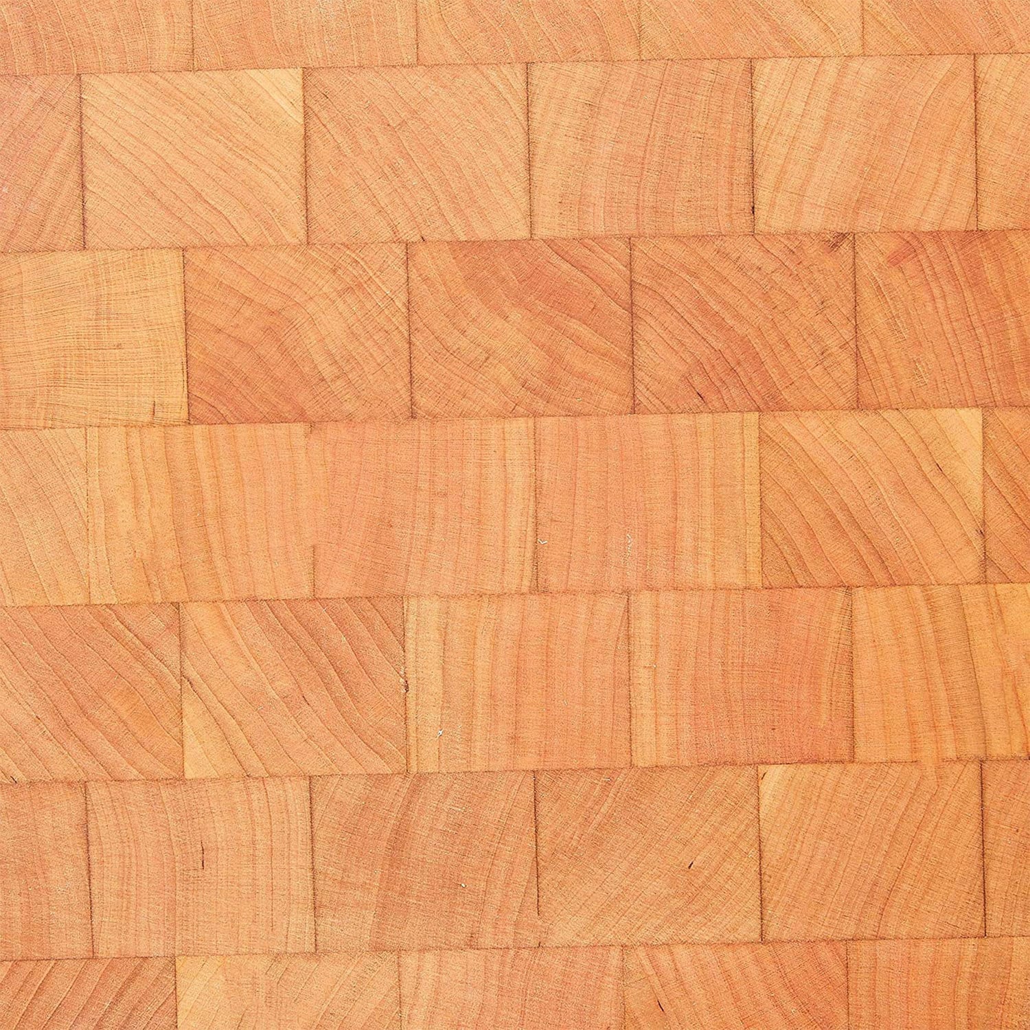 Bring home a culinary classic from the Classic End Grain Chopping Block collection by John Boos. The Classic chopping block collection features butcher blocks made with beautiful end grain construction, resulting in the iconic checkerboard wood pattern. Classic blocks are available in both round and square shapes, in 3 or 4 inch thicknesses. True to their roots, Classic Collection chopping blocks not reversible, and are ideal for daily cutting, chopping and food preparation tasks. Since 1887, every genuine John Boos cutting board and butcher block has been proudly made in Effingham, Illinois by skilled craftspeople using time honored techniques. Today, USA made John Boos cutting boards and butcher blocks are used and loved in commercial and home kitchens worldwide. Generations of culinary professionals have trusted and relied on John Boos products, because Boos blocks and cutting boards are designed to meet the demanding requirements of culinary professionals who expect the highest level of quality and food safety standards. The robust and durable construction gives the work surface a commercial grade toughness that protects the sharp edge on fine cutlery. Often imitated, John Boos and Co. is internationally known for its expertise in crafting American hardwoods into products of beauty, durability and function. Simple board care can ensure this heirloom, handcrafted board is a favorite in your kitchen for years to come. Every John Boos Board and Block comes with a food safe natural oil finish that helps protect the wood during transit. Once a month, apply an even coat of John Boos Mystery Oil (NSF approved, sold separately), and allow it to soak in overnight. Repeat this process more often when the board is brand new or if you live in a dry, arid climate. John Boos recommends applying John Boos Board Cream (also sold separately) to seal the top of the wood surface after applying the Mystery Oil. A few quick minutes of regular oil application will ensure your new board is properly seasoned, and ready for work! After use, wash board with warm, soapy water (all wooden cutting boards are not dishwasher safe and should not be soaked in water).. 18DIAX3 MPL-END GR-NON REV-NO GRV-