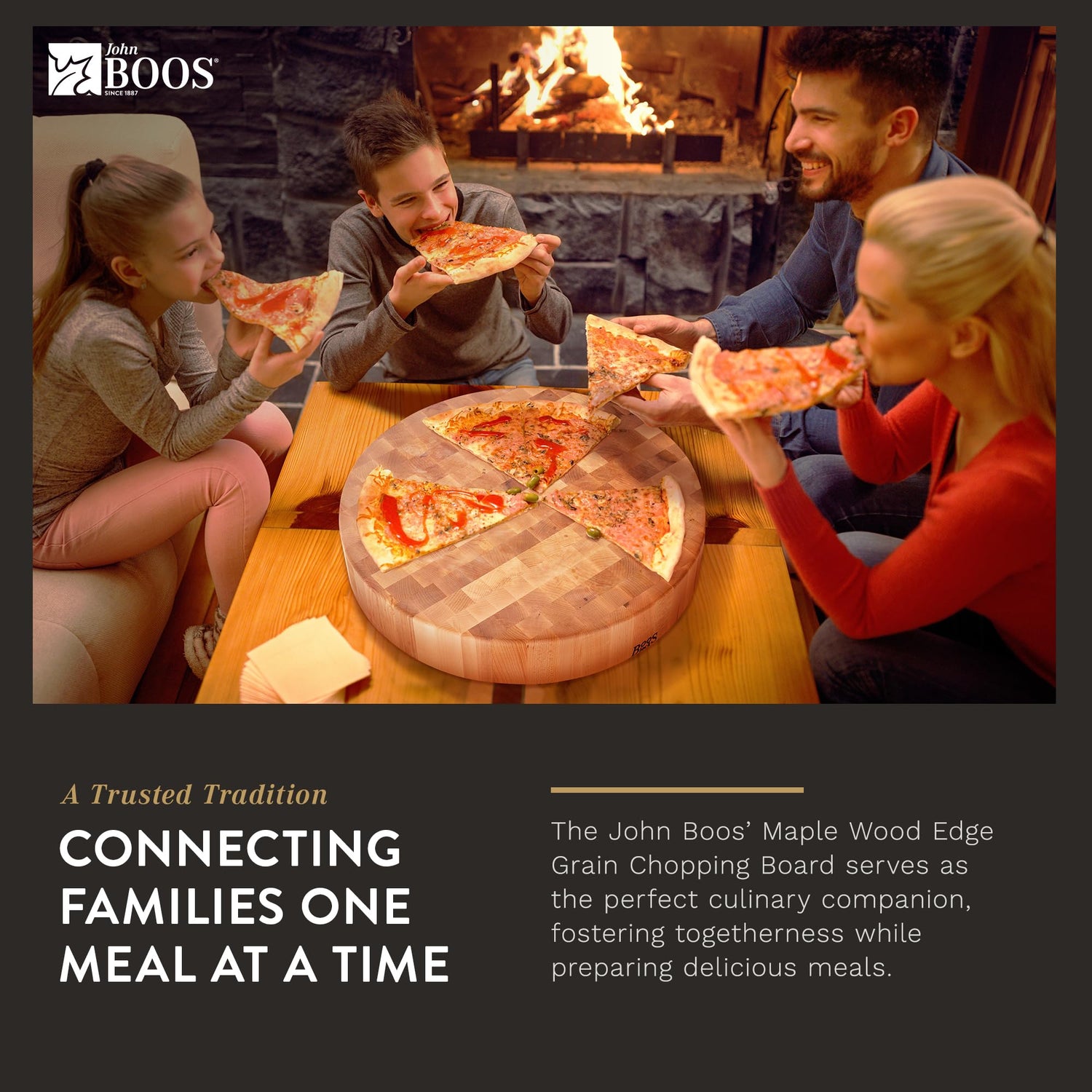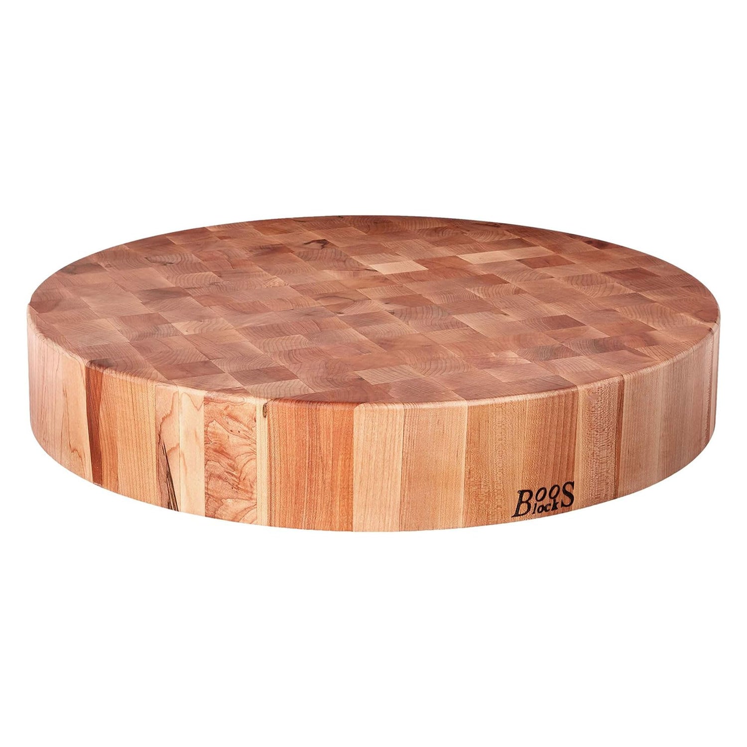 Bring home a culinary classic from the Classic End Grain Chopping Block collection by John Boos. The Classic chopping block collection features butcher blocks made with beautiful end grain construction, resulting in the iconic checkerboard wood pattern. Classic blocks are available in both round and square shapes, in 3 or 4 inch thicknesses. True to their roots, Classic Collection chopping blocks not reversible, and are ideal for daily cutting, chopping and food preparation tasks. Since 1887, every genuine John Boos cutting board and butcher block has been proudly made in Effingham, Illinois by skilled craftspeople using time honored techniques. Today, USA made John Boos cutting boards and butcher blocks are used and loved in commercial and home kitchens worldwide. Generations of culinary professionals have trusted and relied on John Boos products, because Boos blocks and cutting boards are designed to meet the demanding requirements of culinary professionals who expect the highest level of quality and food safety standards. The robust and durable construction gives the work surface a commercial grade toughness that protects the sharp edge on fine cutlery. Often imitated, John Boos and Co. is internationally known for its expertise in crafting American hardwoods into products of beauty, durability and function. Simple board care can ensure this heirloom, handcrafted board is a favorite in your kitchen for years to come. Every John Boos Board and Block comes with a food safe natural oil finish that helps protect the wood during transit. Once a month, apply an even coat of John Boos Mystery Oil (NSF approved, sold separately), and allow it to soak in overnight. Repeat this process more often when the board is brand new or if you live in a dry, arid climate. John Boos recommends applying John Boos Board Cream (also sold separately) to seal the top of the wood surface after applying the Mystery Oil. A few quick minutes of regular oil application will ensure your new board is properly seasoned, and ready for work! After use, wash board with warm, soapy water (all wooden cutting boards are not dishwasher safe and should not be soaked in water).. 24DIAX4 MPL-END GR-NON REV-NO GRIPS