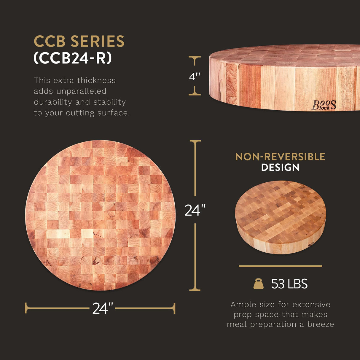 John Boos CCB24-R Medium Maple Wood Cutting Board for Kitchen 24 x Inches, 4 Inches Thick Non-Reversible Charcuterie End Grain Block with Oil Finish 24DIAX4 MPL-END GR-NON REV-NO GRIPS