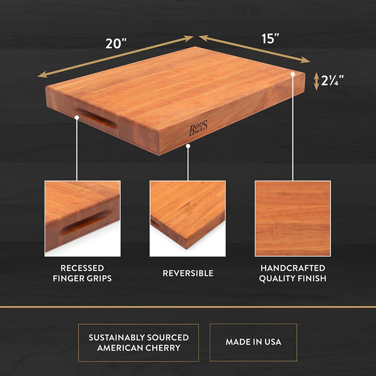 John Boos CHY-RA02 Cherry Wood Cutting Board for Kitchen Prep 20 Inches x 15 Inches, 2.25 Thick Reversible End Grain Rectangular Charcuterie Block 20X15X2.25 CHY-EDGE GR-REV-RA BRD-