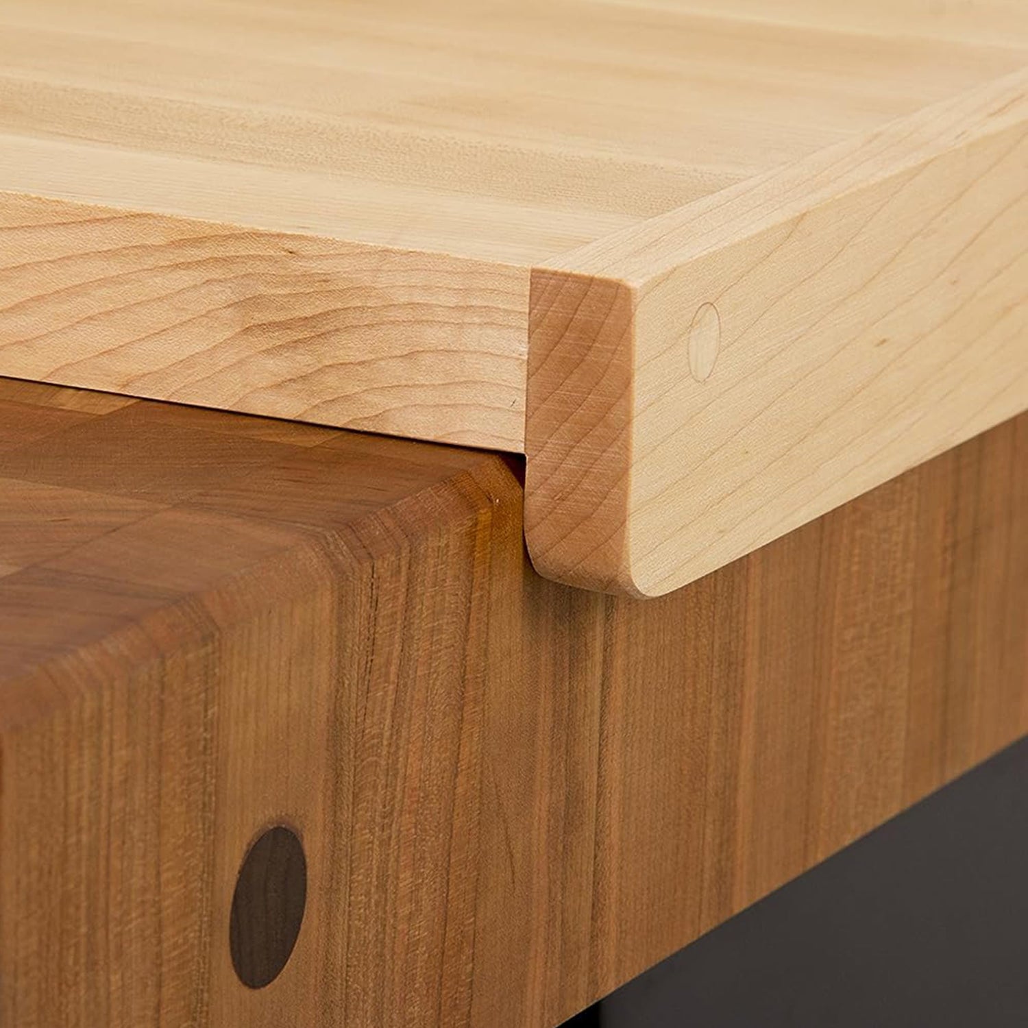 John Boos products are designed to meet the demanding expectations of commercial kitchens, and exceed the highest level of quality and food safety standards. Each board and block is made from sustainably harvested North American hardwoods, and offers a commercial grade cutting surface that protects the sharp edge on fine cutlery. Often imitated, John Boos and Co. is internationally known for its expertise in crafting American hardwoods into products of beauty, durability and function.Simple board care can ensure this heirloom, handcrafted board is a favorite in your kitchen for years to come. Every John Boos Board and Block comes with a food safe natural oil finish that helps protect the wood during transit. Once a month, apply an even coat of NSF Approved John Boos Mystery Oil (sold separately), and allow it to soak in overnight. Repeat this process more often when the board is brand new and โthirsty,โ or if you live in a dry, arid climate. John Boos recommends applying John Boos Board Cream (also sold separately) to seal the top of the wood surface after applying the Mystery Oil. A few quick minutes of regular oil application will ensure your new board is properly seasoned, and ready for work! After use, wash board with warm, soapy water (all wooden cutting boards are not dishwasher safe and should not be soaked in water).Since 1887, every genuine John Boos cutting board and butcher block has been proudly made in Effingham, Illinois by skilled craftspeople using time honored techniques. Today, USA made John Boos cutting boards and butcher blocks are used and loved in commercial and home kitchens worldwide. 17.75X17.25 MPL-EDGE GR-KNEAD BRD-