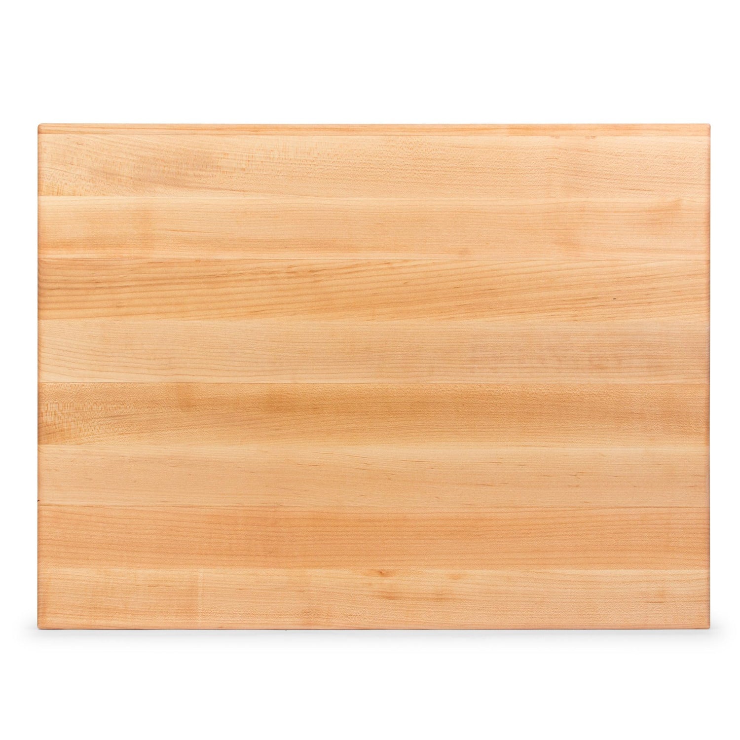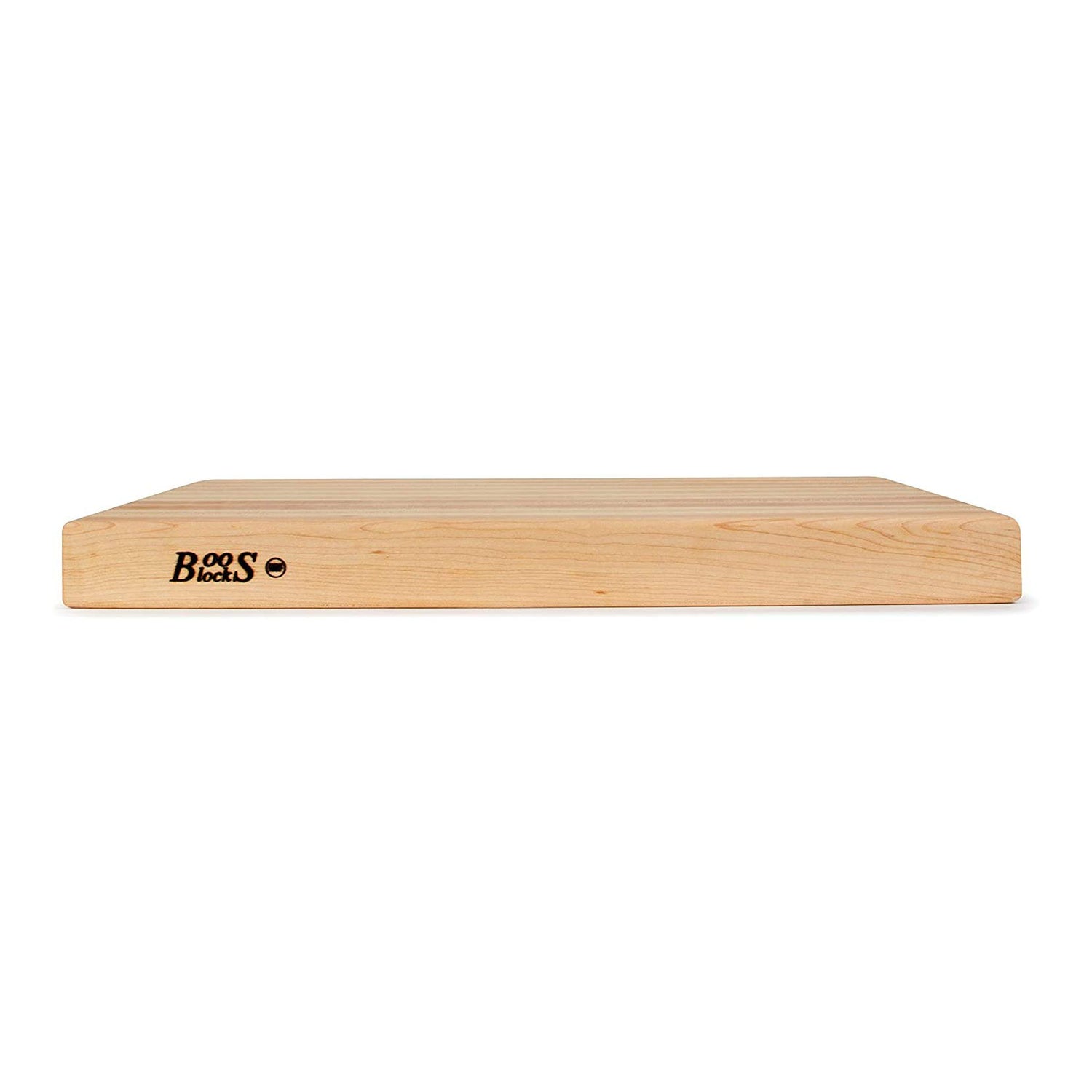 Bring home a culinary classic with a RA Board by John Boos. RA Boards are thick and hearty boards and measures an impressive 2.25 inches thick. Each RA board features sleek edge grain construction, resulting in a modern linear grain pattern.John Boos products are designed to meet the demanding expectations of commercial kitchens, and exceed the highest level of quality and food safety standards. Each board and block is made from sustainably harvested North American hardwoods, and offers a commercial grade cutting surface that protects the sharp edge on fine cutlery. Often imitated, John Boos and Co. is internationally known for its expertise in crafting American hardwoods into products of beauty, durability and function.Simple board care can ensure this heirloom, handcrafted board is a favorite in your kitchen for years to come. Every John Boos Board and Block comes with a food safe natural oil finish that helps protect the wood during transit. Once a month, apply an even coat of NSF Approved John Boos Mystery Oil (sold separately), and allow it to soak in overnight. Repeat this process more often when the board is brand new and “thirsty,” or if you live in a dry, arid climate. John Boos recommends applying John Boos Board Cream (also sold separately) to seal the top of the wood surface after applying the Mystery Oil. A few quick minutes of regular oil application will ensure your new board is properly seasoned, and ready for work! After use, wash board with warm, soapy water (all wooden cutting boards are not dishwasher safe and should not be soaked in water).Since 1887, every genuine John Boos cutting board and butcher block has been proudly made in Effingham, Illinois by skilled craftspeople using time honored techniques. Today, USA made John Boos cutting boards and butcher blocks are used and loved in commercial and home kitchens worldwide. Boos Block Cream Finish w/Beeswax 24X18X2.25 MPL-EDGE GR-REV-GRIPS-