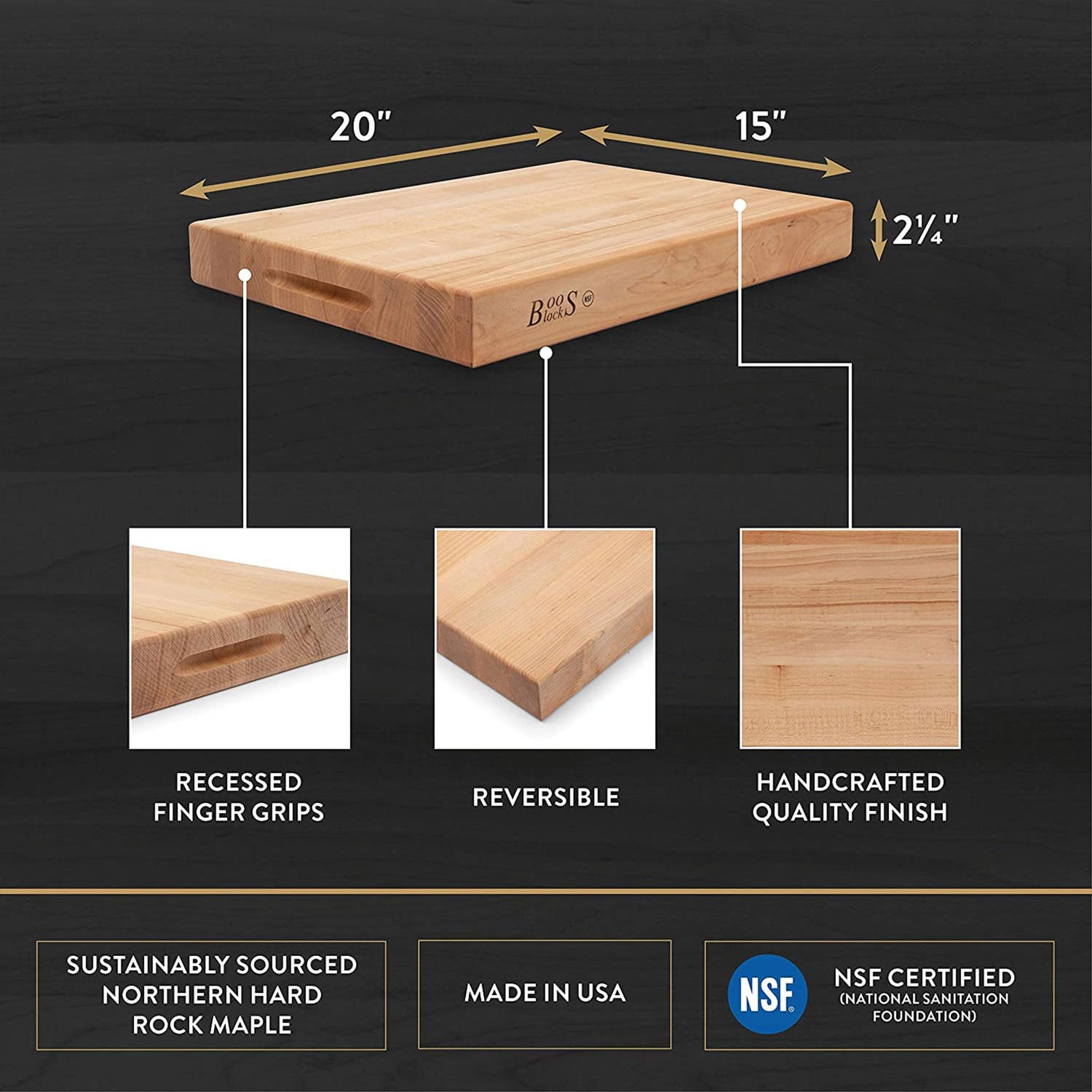 John Boos RA03-2 Maple Wood Cutting Board for Kitchen Prep 24 Inches x 18 Inches, 2.25 Thick Reversible End Grain Rectangular Charcuterie Block 24X18X2.25 MPL-EDGE GR-REV-GRIPS-