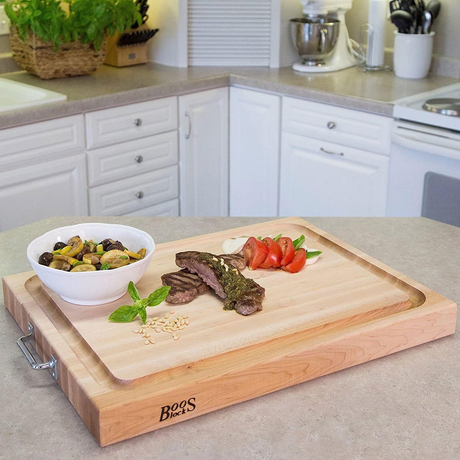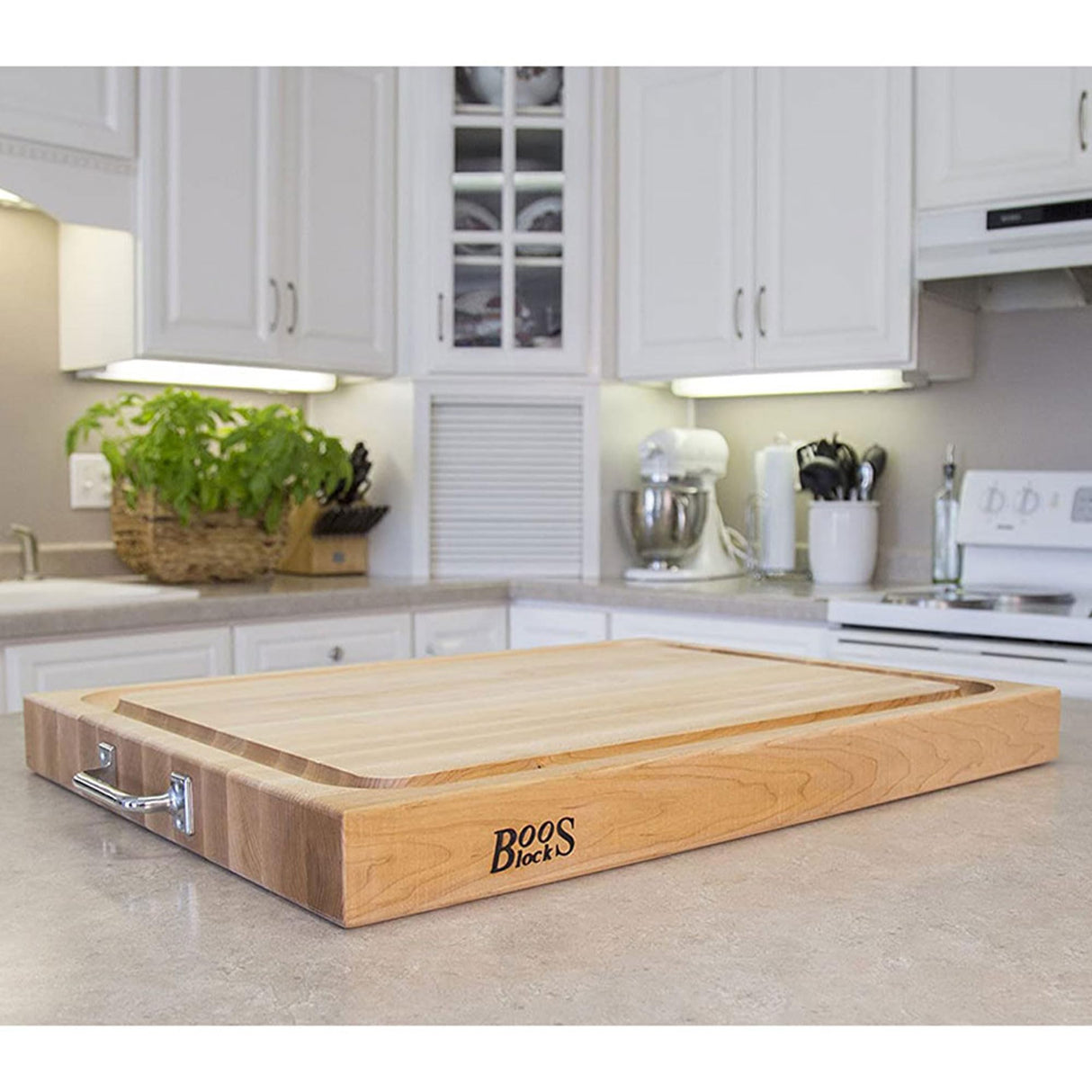 John Boos RAFR2418 Block 24 x 18 Inch Edge Grain Maple Wood Reversible Cutting Board with Fluid Channels & Side Handles 24X18X2.25 MPL-EDGE GR-REV-GRVY GRV
