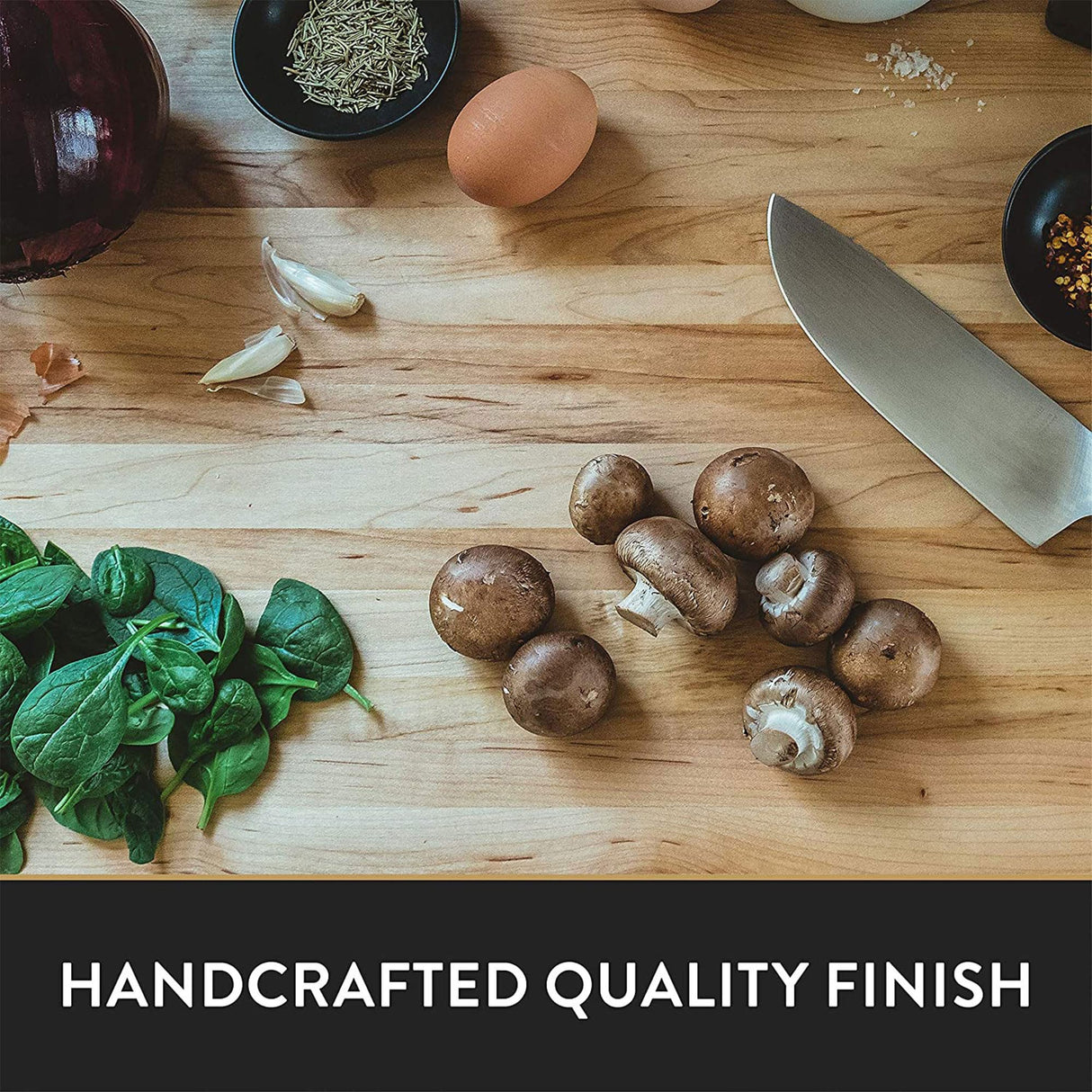 John Boos products are designed to meet the demanding expectations of commercial kitchens, and exceed the highest level of quality and food safety standards. Each board and block is made from sustainably harvested North American hardwoods, and offers a commercial grade cutting surface that protects the sharp edge on fine cutlery. Often imitated, John Boos and Co. is internationally known for its expertise in crafting American hardwoods into products of beauty, durability and function.Simple board care can ensure this heirloom, handcrafted board is a favorite in your kitchen for years to come. Every John Boos Board and Block comes with a food safe natural oil finish that helps protect the wood during transit. Once a month, apply an even coat of NSF Approved John Boos Mystery Oil (sold separately), and allow it to soak in overnight. Repeat this process more often when the board is brand new and โthirsty,โ or if you live in a dry, arid climate. John Boos recommends applying John Boos Board Cream (also sold separately) to seal the top of the wood surface after applying the Mystery Oil. A few quick minutes of regular oil application will ensure your new board is properly seasoned, and ready for work! After use, wash board with warm, soapy water (all wooden cutting boards are not dishwasher safe and should not be soaked in water).Since 1887, every genuine John Boos cutting board and butcher block has been proudly made in Effingham, Illinois by skilled craftspeople using time honored techniques. Today, USA made John Boos cutting boards and butcher blocks are used and loved in commercial and home kitchens worldwide. 24X18X2.25 MPL-EDGE GR-REV-GRVY GRV
