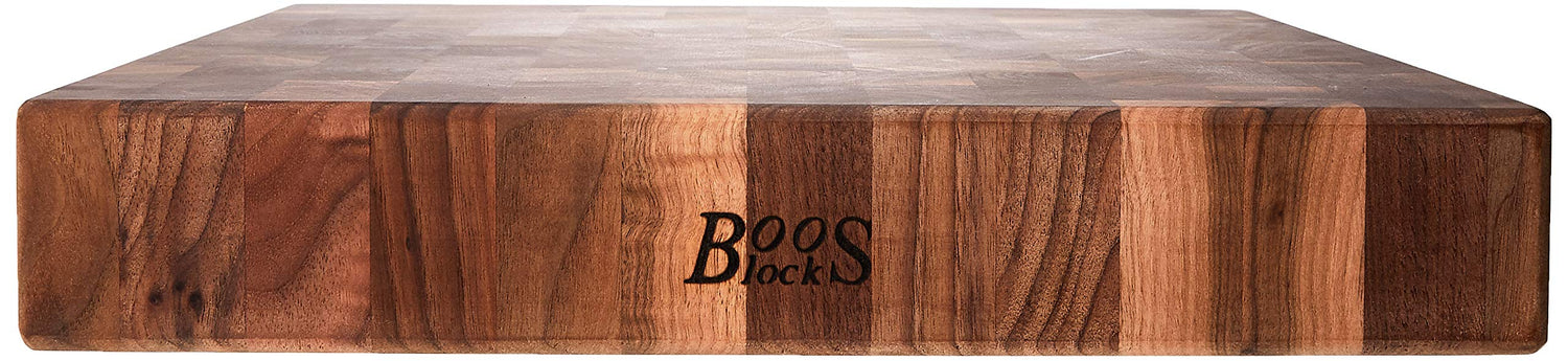 Bring home a culinary classic from the Classic Reversible End Grain Chopping Block collection by John Boos. The Classic collection features butcher blocks made with beautiful end grain construction, resulting in the iconic checkerboard wood pattern. Classic Reversible blocks are available in thicknesses ranging from 2.25-6 inches. True to their roots, Classic Collection Chopping Blocks are ideal for daily cutting, chopping and food preparation tasks. Since 1887, every genuine John Boos cutting board and butcher block has been proudly made in Effingham, Illinois by skilled craftspeople using time honored techniques. Today, USA made John Boos cutting boards and butcher blocks are used and loved in commercial and home kitchens worldwide. Generations of culinary professionals have trusted and relied on John Boos products, because Boos blocks and cutting boards are designed to meet the demanding requirements of culinary professionals who expect the highest level of quality and food safety standards. The robust and durable construction gives the work surface a commercial grade toughness that protects the sharp edge on fine cutlery. Often imitated, John Boos and Co. is internationally known for its expertise in crafting American hardwoods into products of beauty, durability and function. Simple board care can ensure this heirloom, handcrafted board is a favorite in your kitchen for years to come. Every John Boos Board and Block comes with a food safe natural oil finish that helps protect the wood during transit. Once a month, apply an even coat of John Boos Mystery Oil (NSF approved, sold separately), and allow it to soak in overnight. Repeat this process more often when the board is brand new or if you live in a dry, arid climate. John Boos recommends applying John Boos Board Cream (also sold separately) to seal the top of the wood surface after applying the Mystery Oil. A few quick minutes of regular oil application will ensure your new board is properly seasoned, and ready for work! After use, wash board with warm, soapy water (all wooden cutting boards are not dishwasher safe and should not be soaked in water).. 18X18X3 WAL-END GR-REV-GRIPS-