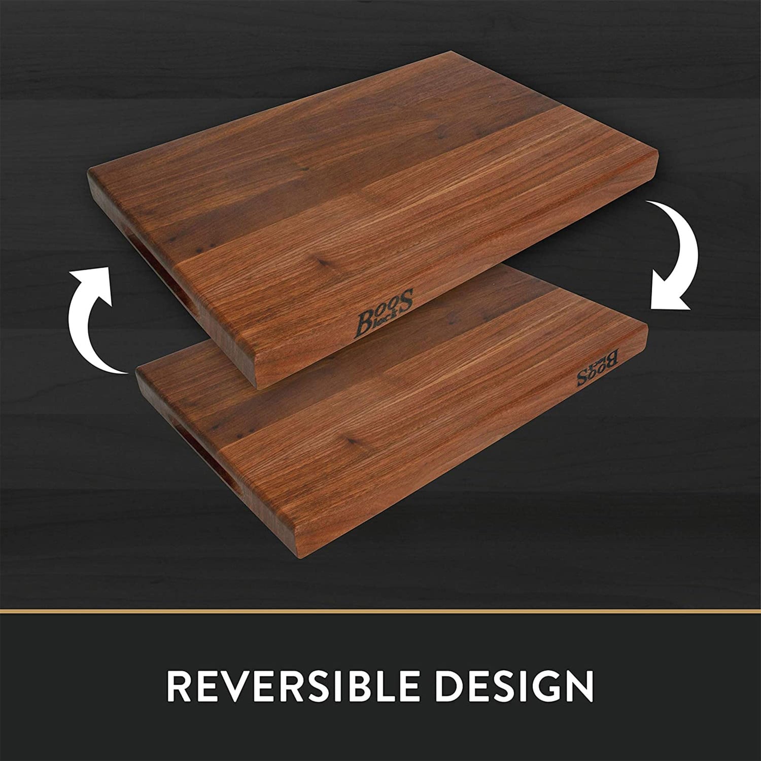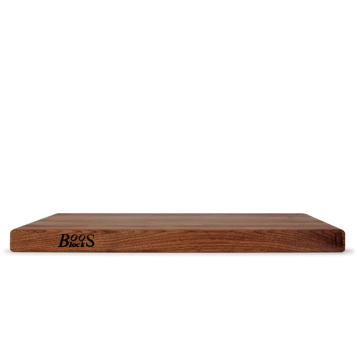 Bring home a culinary icon with a classic "R" Board by John Boos. "R" Boards are hearty, heirloom quality boards that measure 1.5 inches thick. Each "R" board features sleek edge grain construction, resulting in a modern linear grain pattern.John Boos products are designed to meet the demanding expectations of commercial kitchens, and exceed the highest level of quality and food safety standards. Each board and block is made from sustainably harvested North American hardwoods, and offers a commercial grade cutting surface that protects the sharp edge on fine cutlery. Often imitated, John Boos and Co. is internationally known for its expertise in crafting American hardwoods into products of beauty, durability and function.Simple board care can ensure this heirloom, handcrafted board is a favorite in your kitchen for years to come. Every John Boos Board and Block comes with a food safe natural oil finish that helps protect the wood during transit. Once a month, apply an even coat of NSF Approved John Boos Mystery Oil (sold separately), and allow it to soak in overnight. Repeat this process more often when the board is brand new and thirsty, or if you live in a dry, arid climate. John Boos recommends applying John Boos Board Cream (also sold separately) to seal the top of the wood surface after applying the Mystery Oil. A few quick minutes of regular oil application will ensure your new board is properly seasoned, and ready for work! After use, wash board with warm, soapy water (all wooden cutting boards are not dishwasher safe and should not be soaked in water).Since 1887, every genuine John Boos cutting board and butcher block has been proudly made in Effingham, Illinois by skilled craftspeople using time honored techniques. Today, USA made John Boos cutting boards and butcher blocks are used and loved in commercial and home kitchens worldwide.