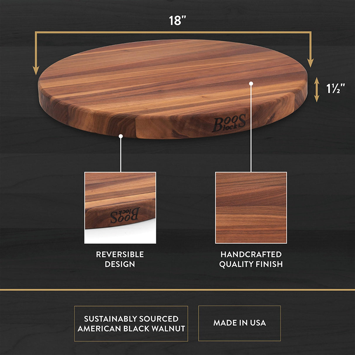 John Boos WAL-R18 Large Walnut Wood Cutting Board for Kitchen Prep 18 Inches Diameter, 1.5 Thick Reversible End Grain Round Charcuterie Block 18DIAX1.5 WAL-EDGE GR-REV-BRANDED