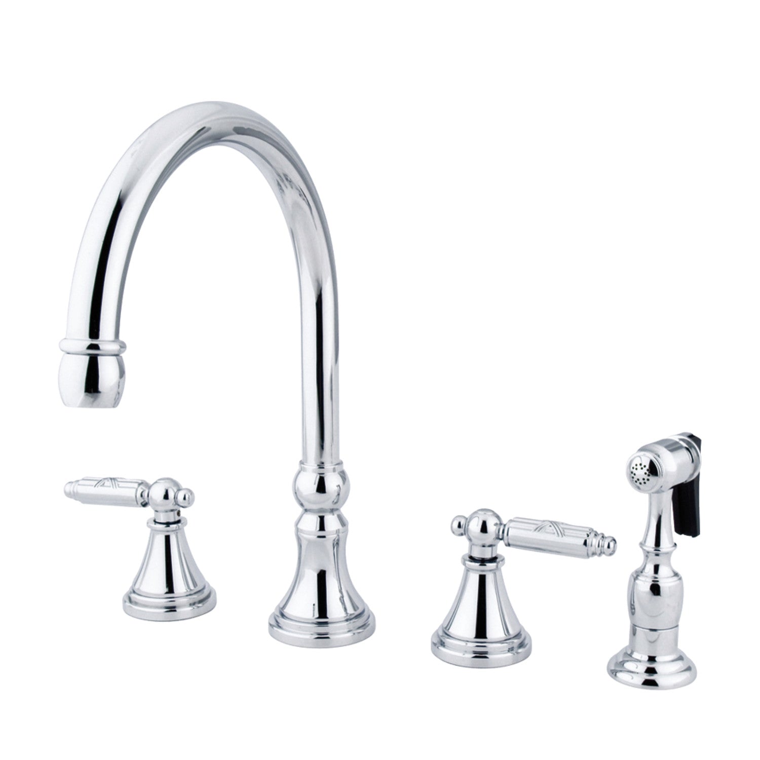 Gourmetier GS2791GLBS Widespread Kitchen Faucet with Brass Sprayer, Polished Chrome